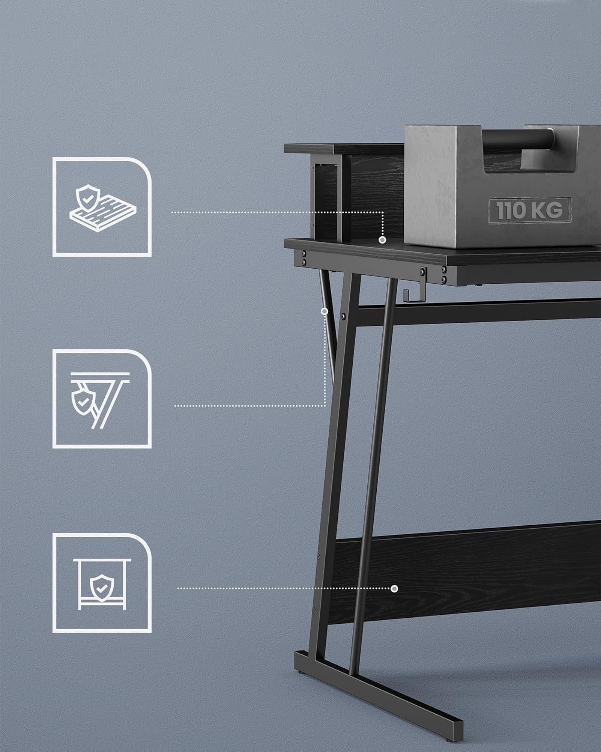 Niet alleen ideaal als gamingdesk, maar ook als stijlvol werk- of studeerbureau. De zwarte afwerking past in elk modern interieur.