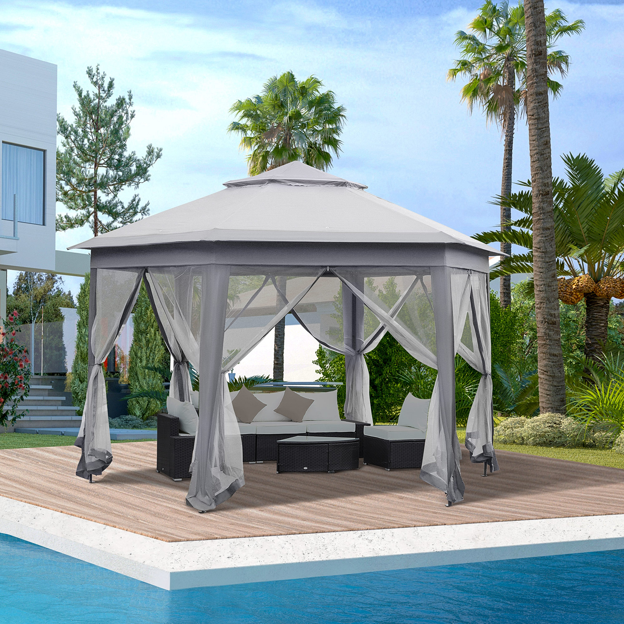 - Het zeshoekige ontwerp van deze feesttent zorgt voor een ruime indeling en een stijlvolle uitstraling.