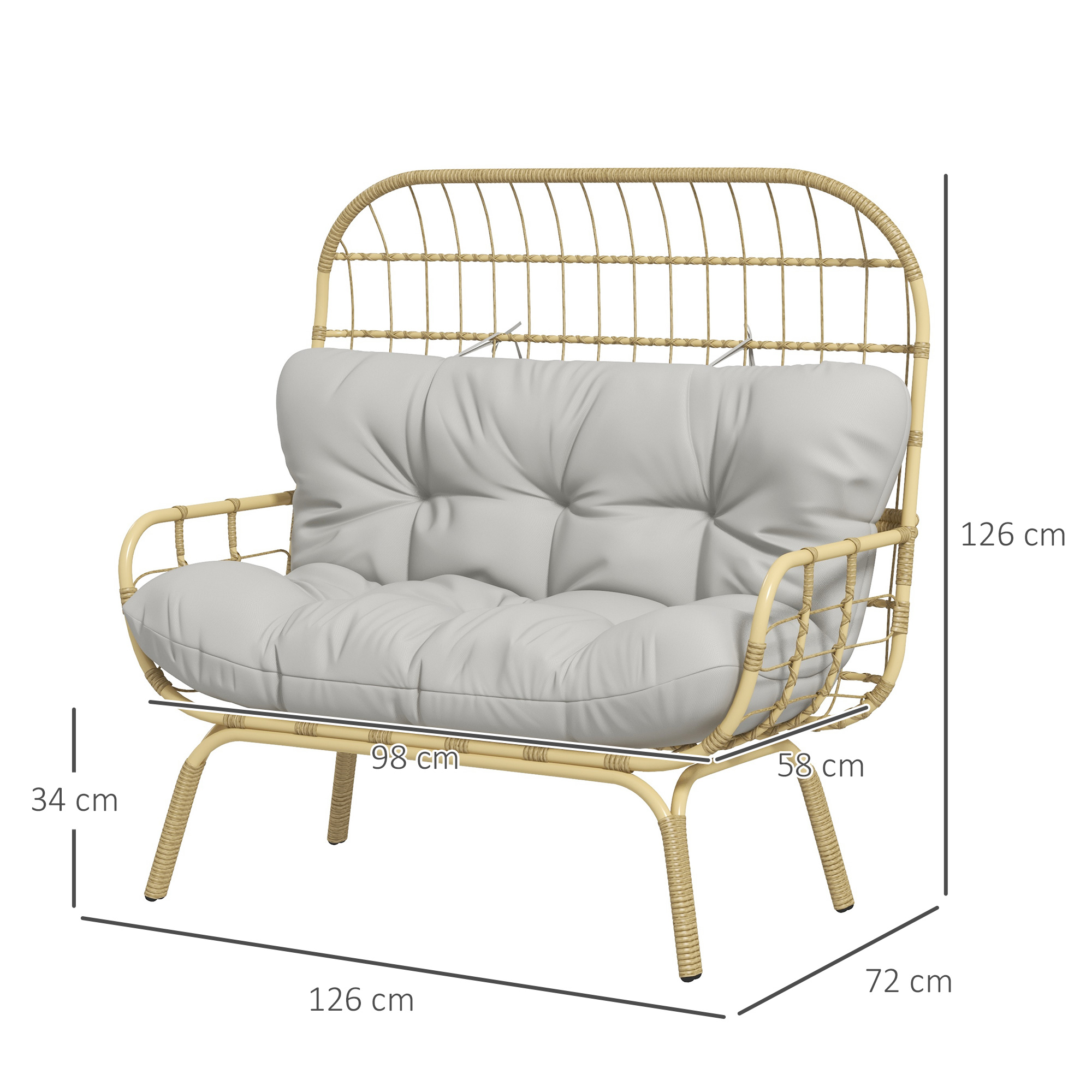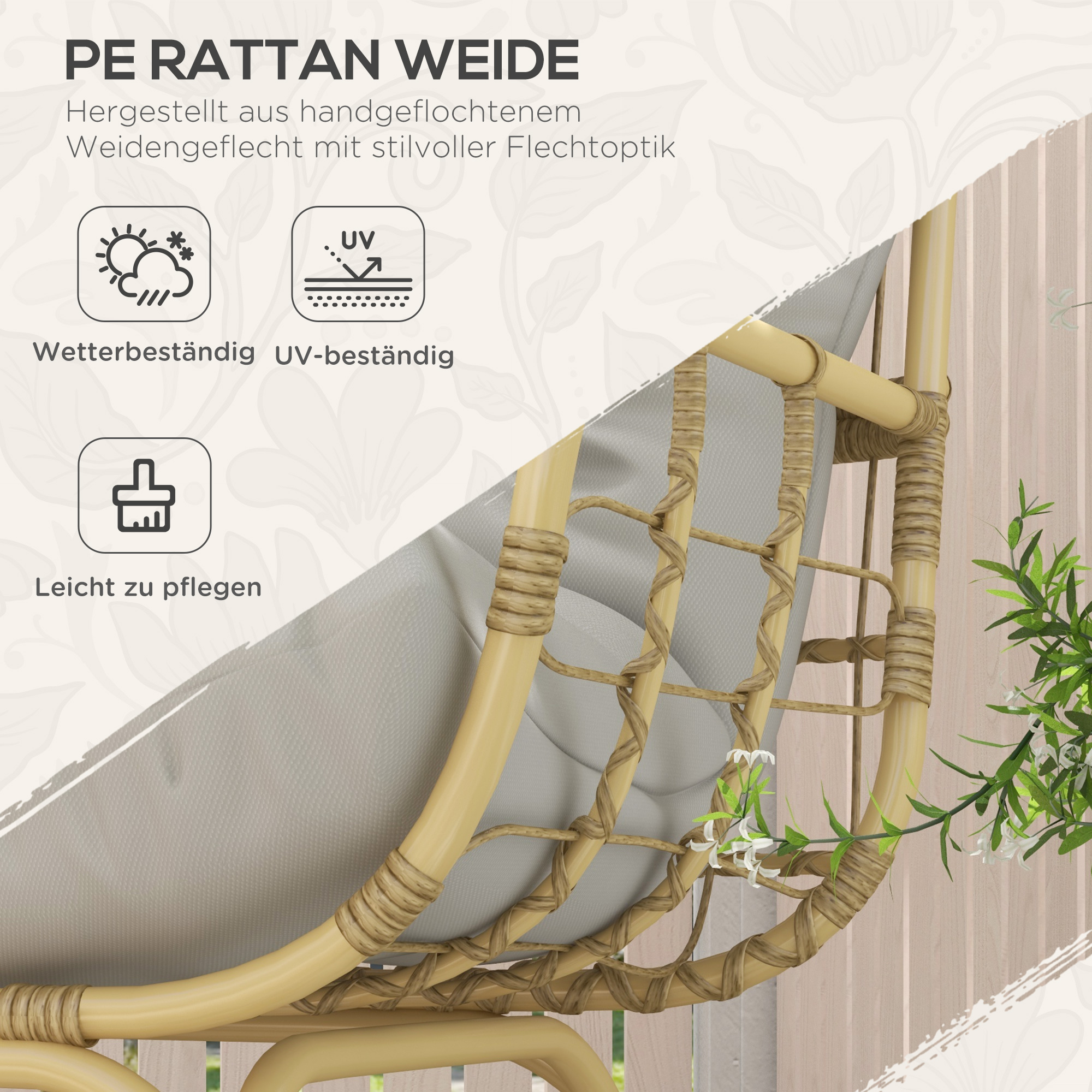 De rotanbank is vervaardigd met hoogwaardige materialen zoals staal, PE rotan, polyester en PP-schuim. Dit zorgt voor een stevige en duurzame constructie die bestand is tegen de elementen. De bank heeft een natuurlijke uitstraling in een lichtgrijze kleur die moeiteloos in elke buitenruimte past.
