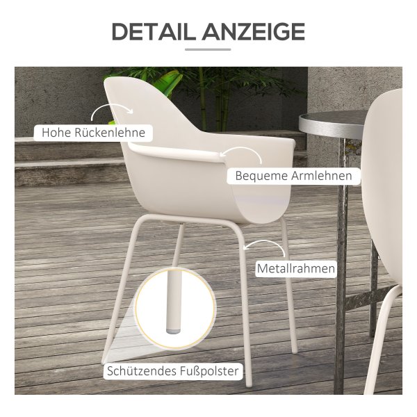 De antislipvoetkussens beschermen uw vloer tegen krassen en beschadigingen, waardoor de tuinstoelen zowel binnen als buiten gebruikt kunnen worden. Montage van de stoelen is eenvoudig en vereist geen gereedschap.
