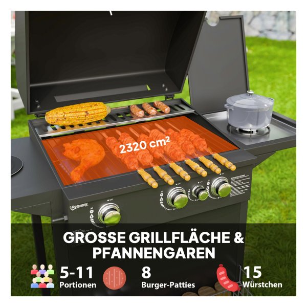 Maak kennis met de ultieme BBQ-ervaring met de Gasbarbecue. Deze krachtige barbecue is speciaal ontworpen voor de echte grillliefhebbers die willen genieten van heerlijk gegrild voedsel in hun eigen achtertuin. Met een indrukwekkende grillfläche van 2320 cm² en het toegevoegde gemak van een warmhoudrooster, is deze gasbarbecue ideaal voor grote gezelschappen en familiefeesten.
