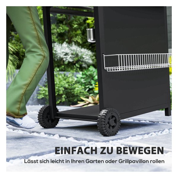 - De twee wielen van de Gasbarbecue maken het eenvoudig om de barbecue te verplaatsen, zodat u hem overal in uw tuin kunt gebruiken.