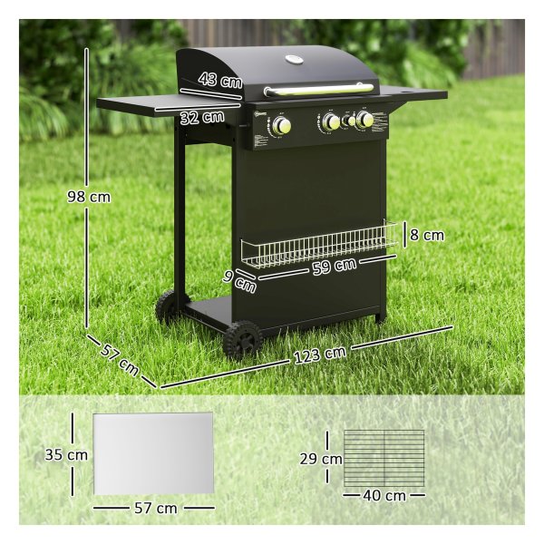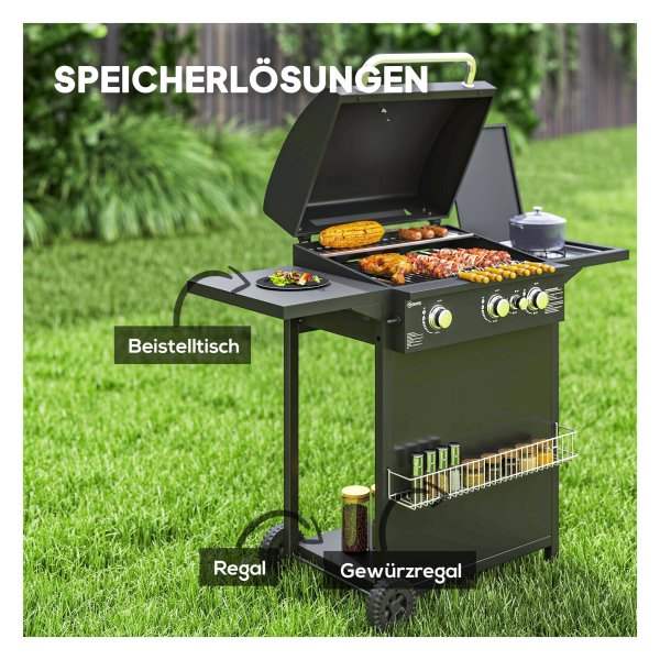 - De Gasbarbecue is ook voorzien van handige opbergruimtes, waaronder een rek, een zijtafel en een kruidenrek, waardoor u al uw benodigdheden binnen handbereik hebt tijdens het koken.