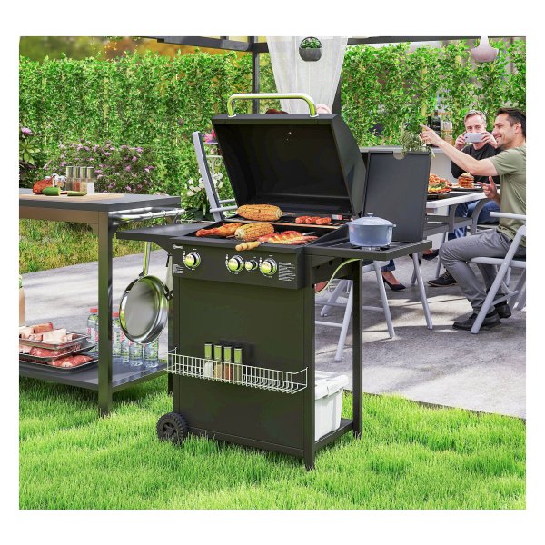 - De zijbrander van de Gasbarbecue maakt het mogelijk om tegelijkertijd te koken in de pan, waardoor u veelzijdigheid krijgt in uw kookopties.