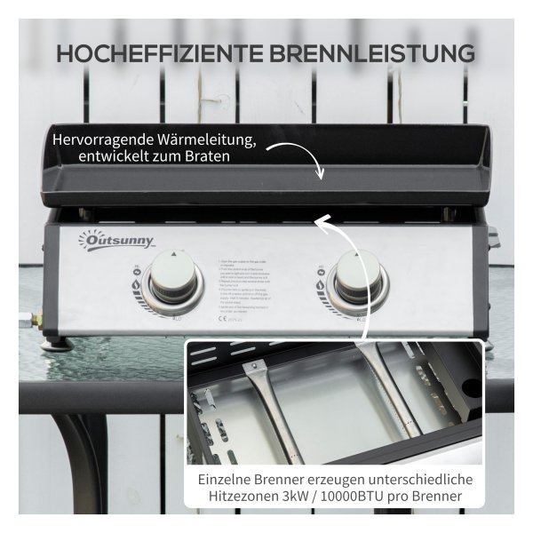 Deze grill is vervaardigd met oog voor detail en kwaliteit. Het zwarte design geeft de grill een moderne uitstraling die perfect past in elke buitenomgeving. De 2 branders zorgen voor een gelijkmatige warmteverdeling, waardoor je gerechten perfect gegrild worden.