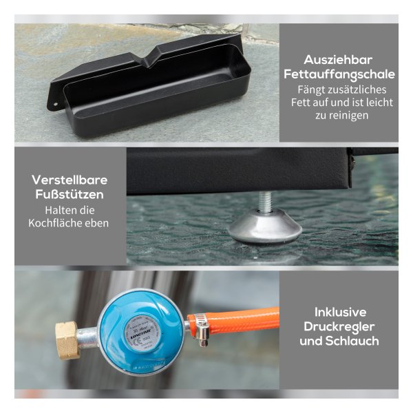 - Eenvoudige koppeling met gasfles dankzij meegeleverde slang