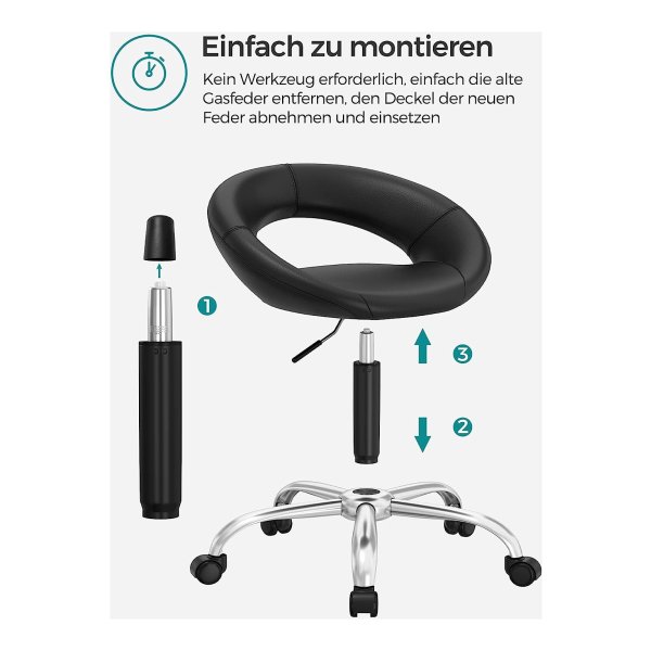 De gasveer is een uitstekende keuze voor iedereen die op zoek is naar een stevige, duurzame en comfortabele bureaustoel. De gasveer is eenvoudig te installeren en te vervangen en biedt een veilige en comfortabele zitervaring.