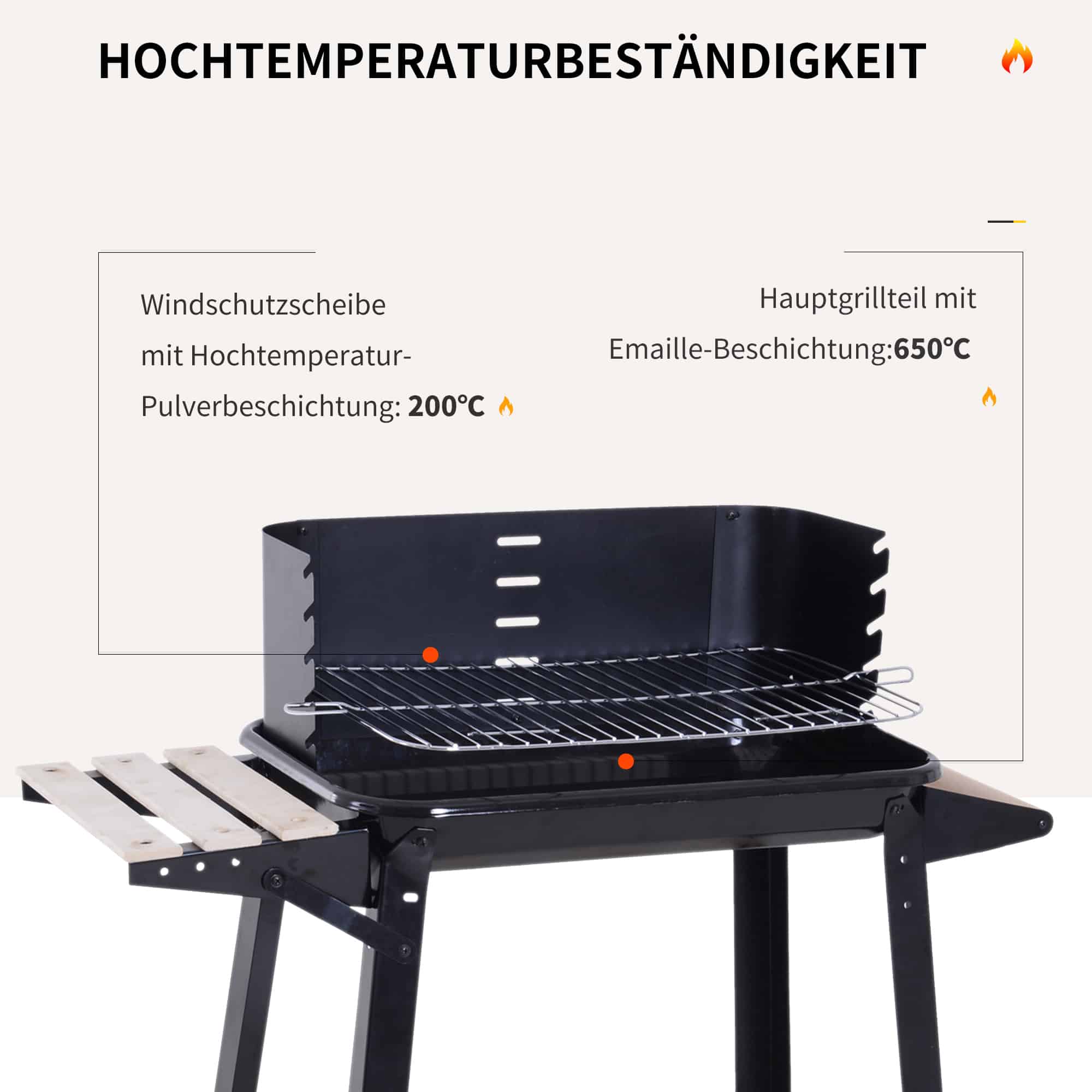 Door de solide constructie van hoogwaardig metaal is deze barbecuekar uiterst duurzaam en biedt hij langdurige prestaties. Het robuuste windscherm zorgt ervoor dat uw barbecue-avonturen niet worden verstoord door wisselende weersomstandigheden.