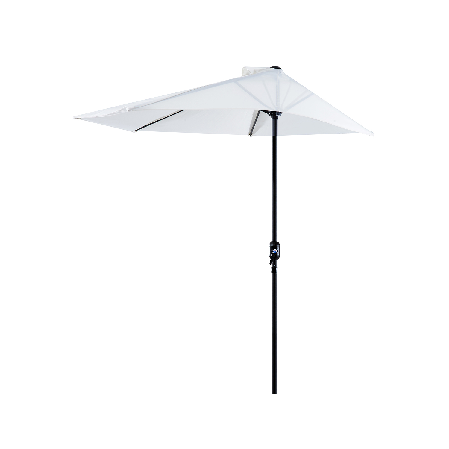 De Metalenparasol – LuxeSun – Halfrond – Crèmewit is de perfecte oplossing om uw balkon, tuin of terras te beschermen tegen de felle zon. Dankzij de halfronde vorm kan de parasol direct aan de muur worden geplaatst, waardoor u optimaal gebruik maakt van de beschikbare ruimte.