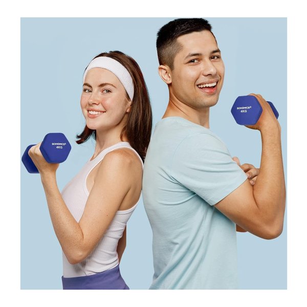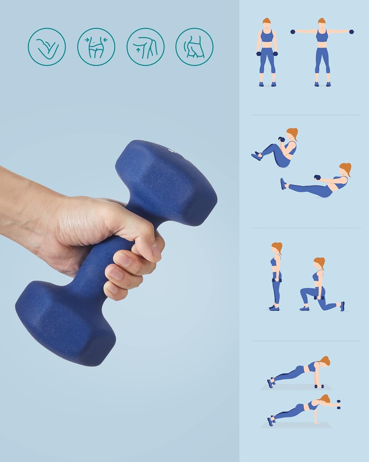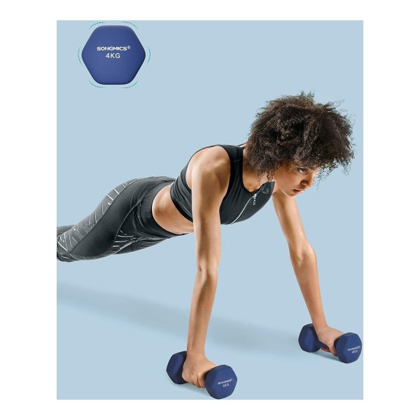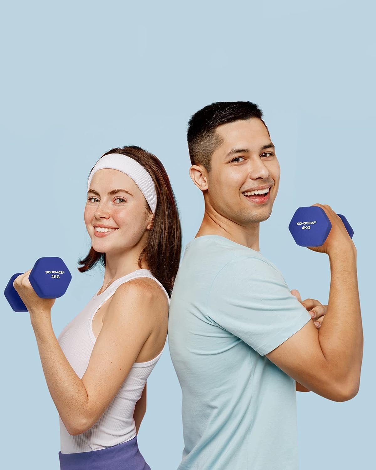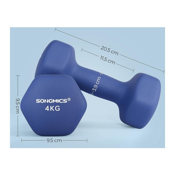Dumbbells Set van 2 2 x 4 kg Dumbbells Set Dumbbells Neopreen Coating Strength Training Training Fitnesstraining voor thuisblauw
