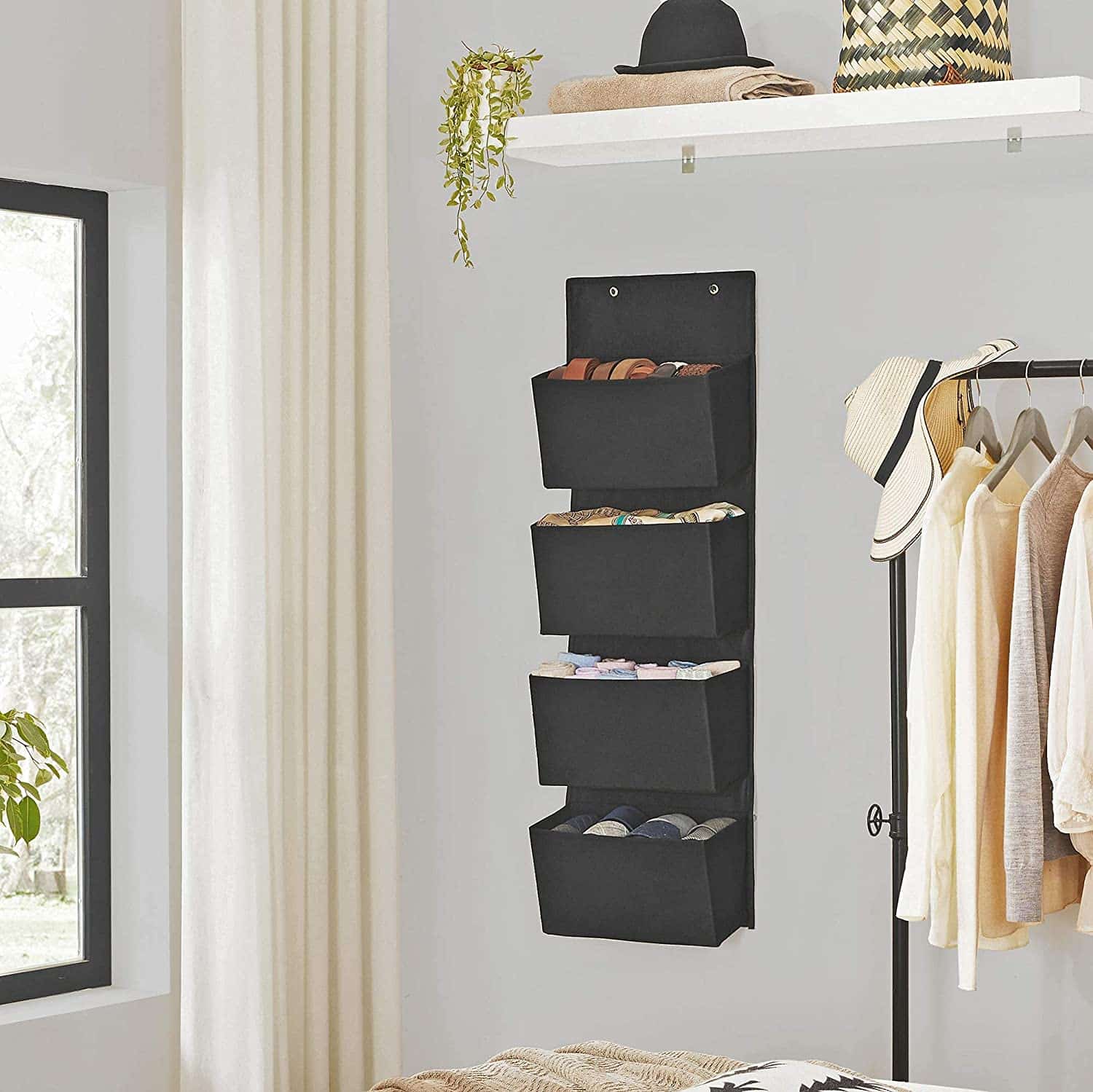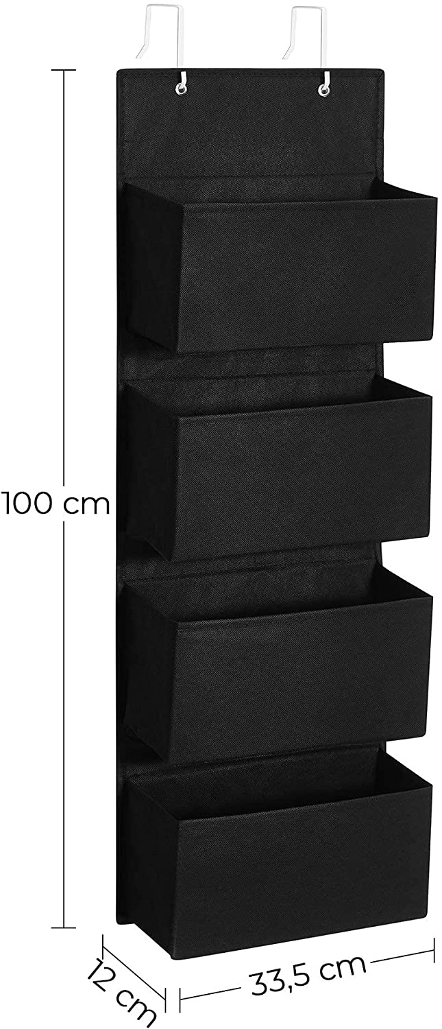 | Bullet Point 1 | Gebruik je deur: Heb je al een groot aantal kasten in je appartement, maar heb je nog geen ruimte meer voor sjaals, sokken of kinderkleding, dan is deze hangende organizer met 4 brede vakken precies wat je nodig hebt. Elke tas is 33,5 x 12 x 100 cm cm |