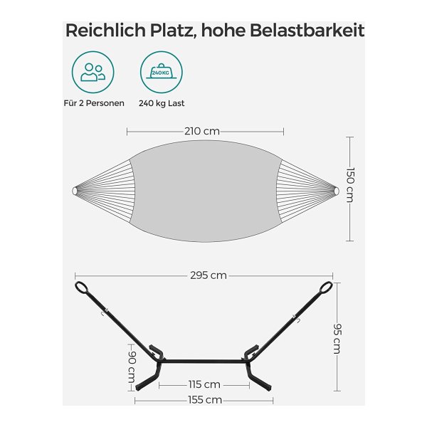 Afmetingen hangmat: 210 x 150 cm (l x b)