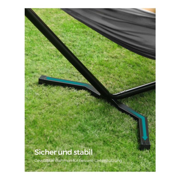 Hangmat Met Frame, 210 X 150 Cm, Op 5 Verschillende Hoogtes Verstelbaar, Metalen Frame, Tot 240 Kg Belastbaar, Voor Tuin, Zwart Frame En Grijze Hangmat