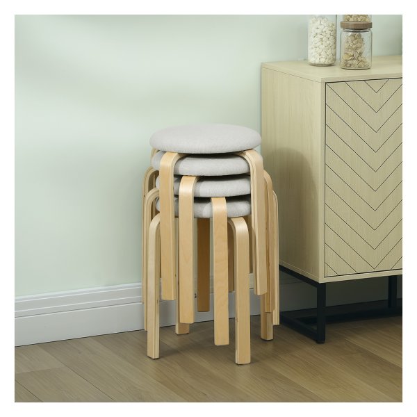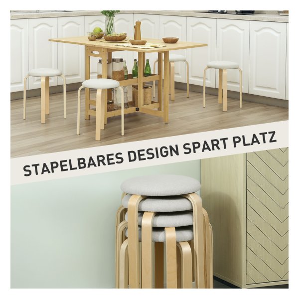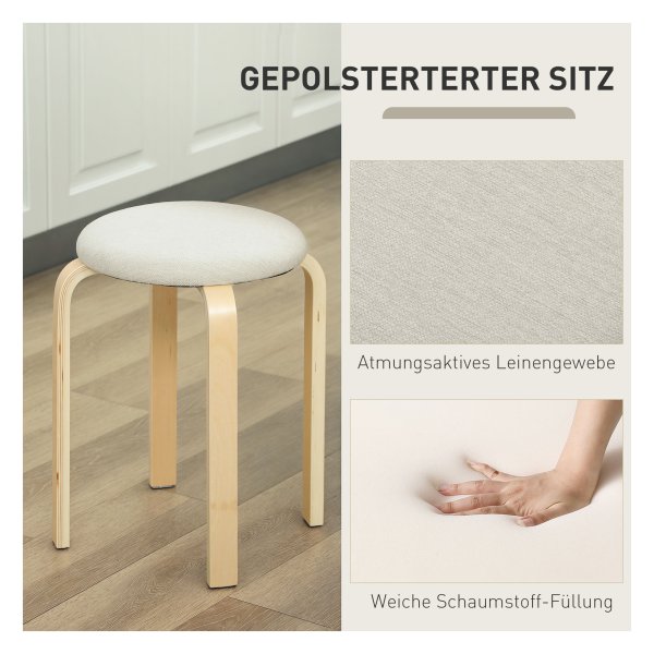 Stapelbare Hocker aus Birkenholz und leinenartigem Stoff bieten Platzsparende Sitzmöglichkeiten mit Komfort und Stabilität. Perfekt für kleine Räume und vielseitig im Einsatz in verschiedenen Wohnbereichen. Leichter Aufbau und einfache Reinigung für stressfreies Wohnen.