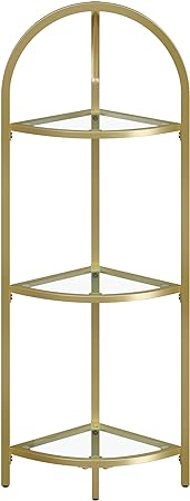 Kleur: Metallic goudmateriaal: staal, gehard glasgrootte: 28 x 28 x 95,2 cm (d x b x h). Afstand tussen de planken: 30 cm. Gewicht: 3,4 kgMax. Statische belastbaarheid per plank: 5 kg