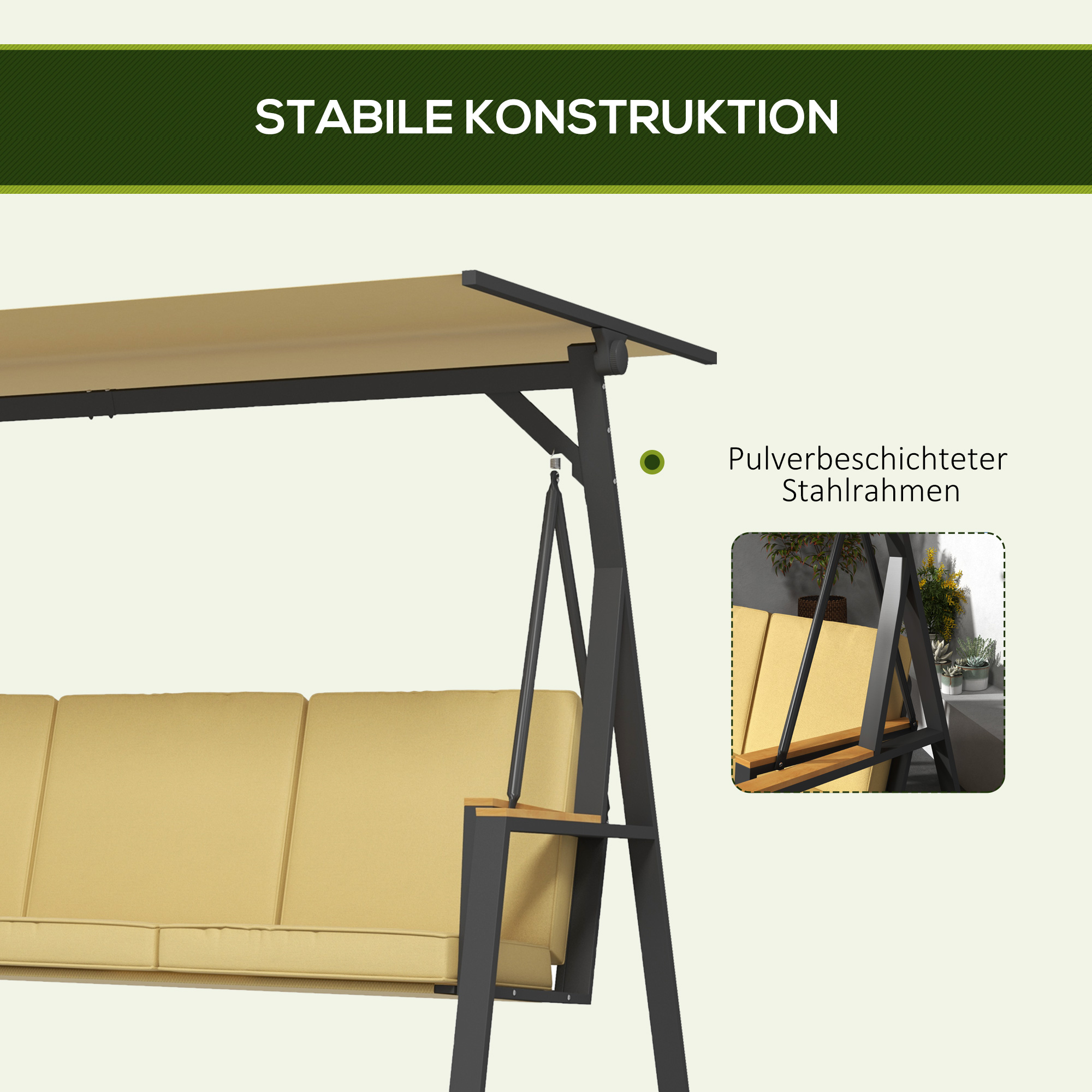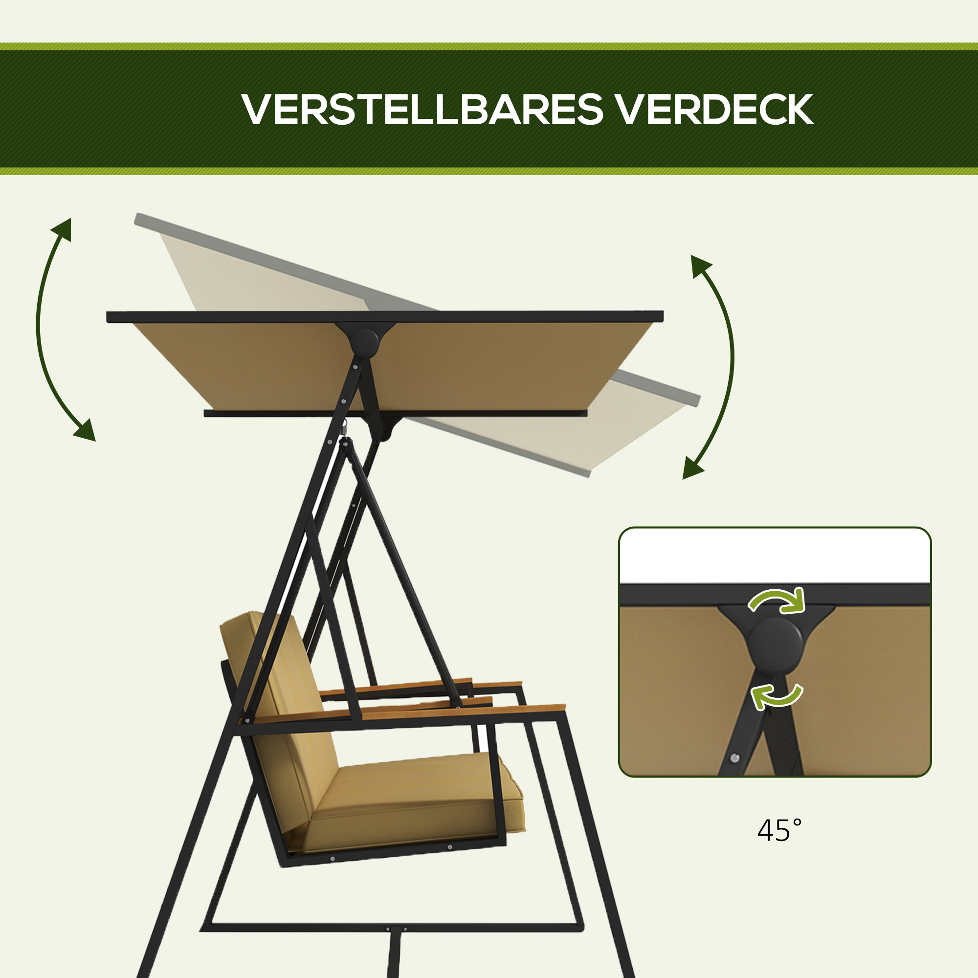 Tuinschommelbank — Verstelbaar dak – Khaki