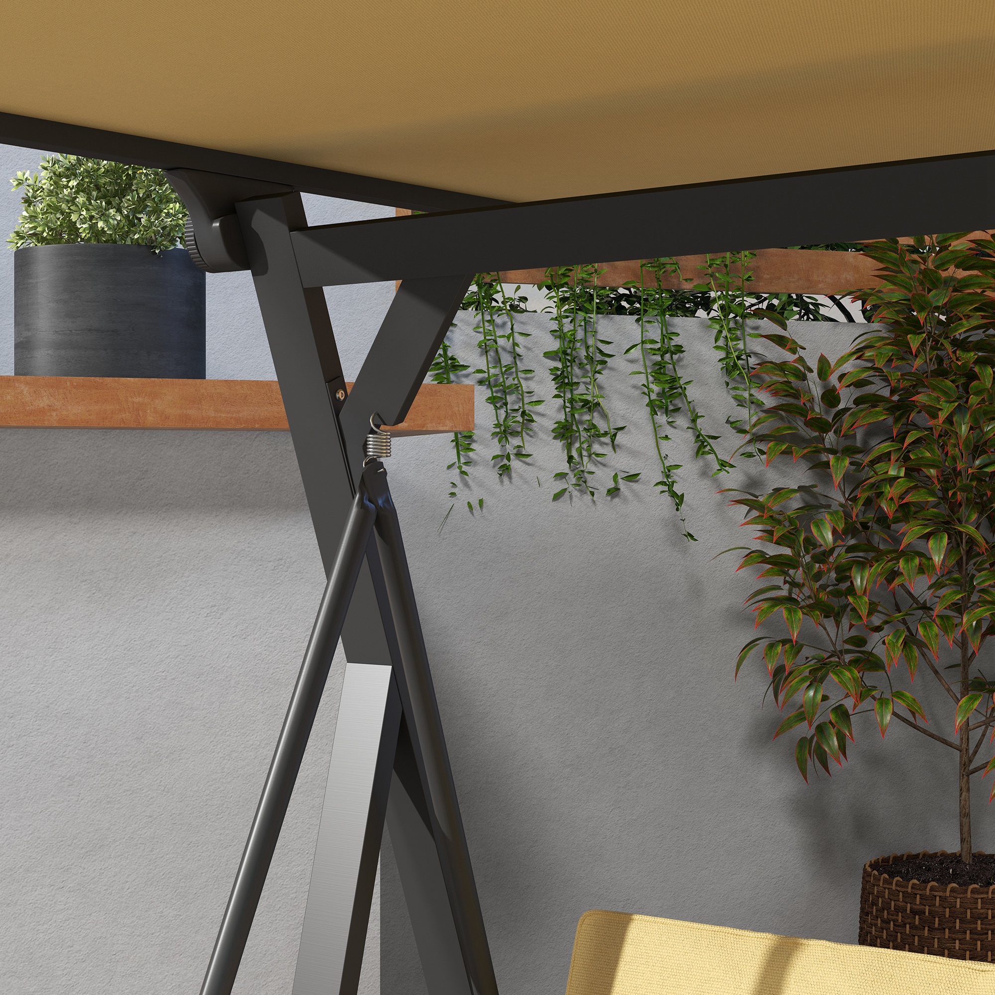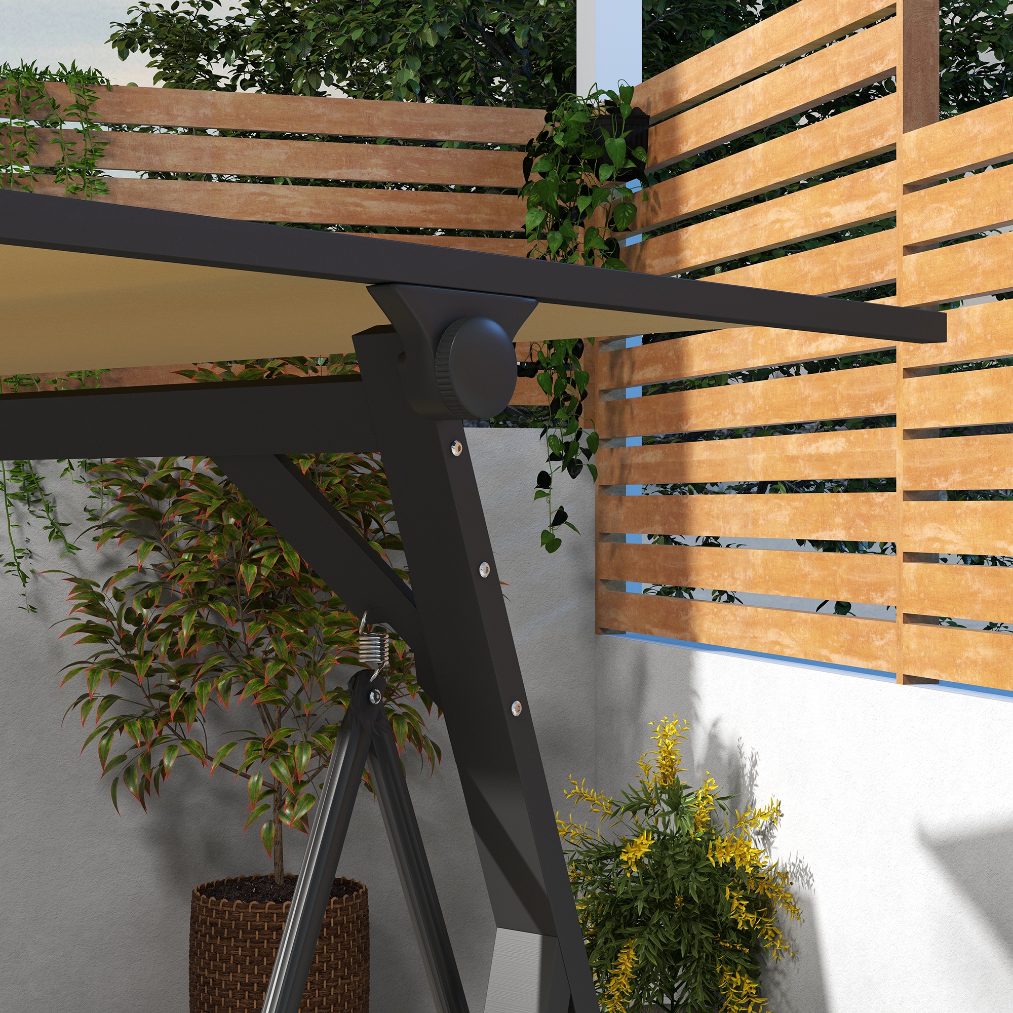 Het robuuste, gepoedercoate stalen frame van de schommelbank kan tot wel 330 kilo dragen, waardoor je met een gerust hart kunt plaatsnemen. De hoogwaardige veren zorgen voor zachte en gelijkmatige bewegingen, terwijl de houtachtige accenten zorgen voor een natuurlijke uitstraling in je tuin.