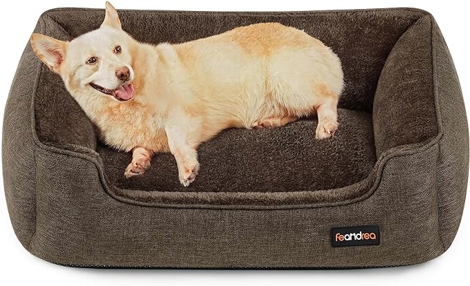 hondenbed, grote hondenbank, overtrek afneembaar en wasbaar in de machine, bruin