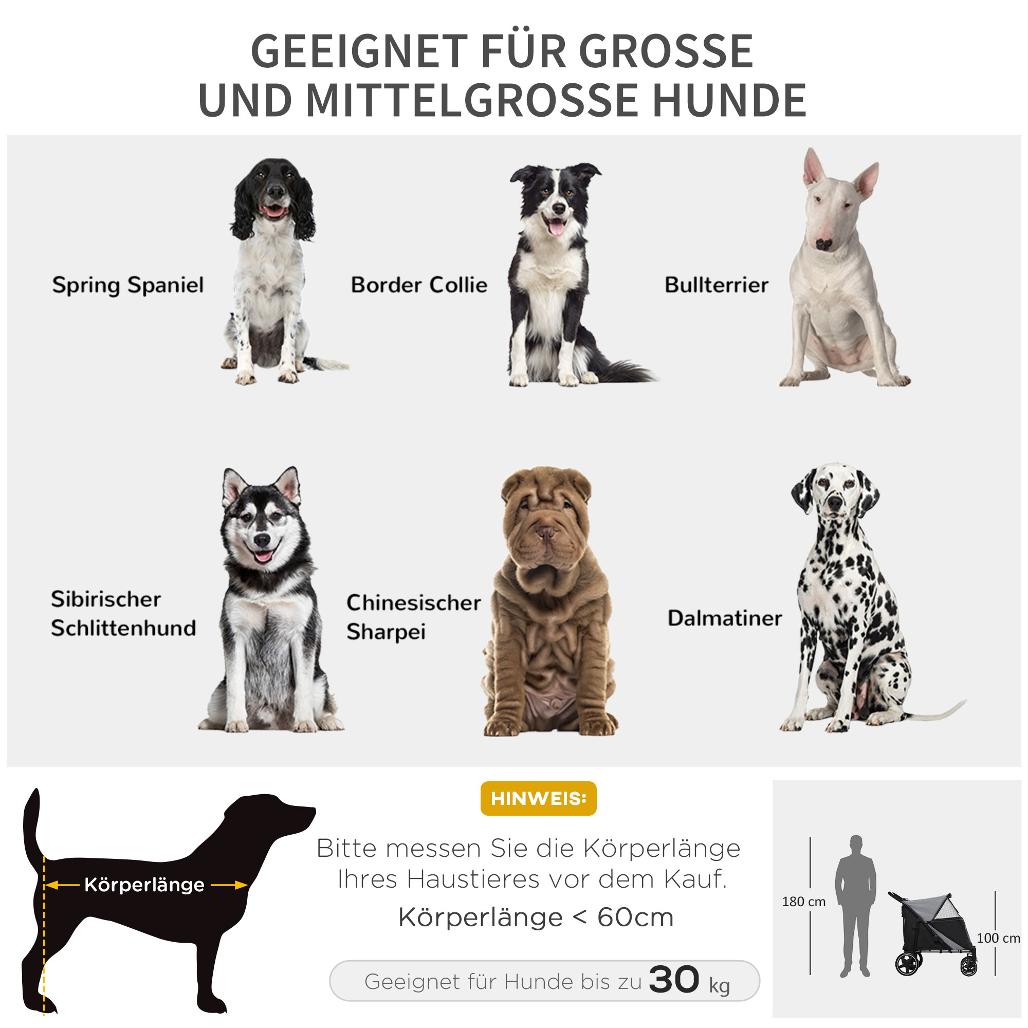 - Geschikt voor grote en middelgrote honden tot 60 cm lang en 30 kg