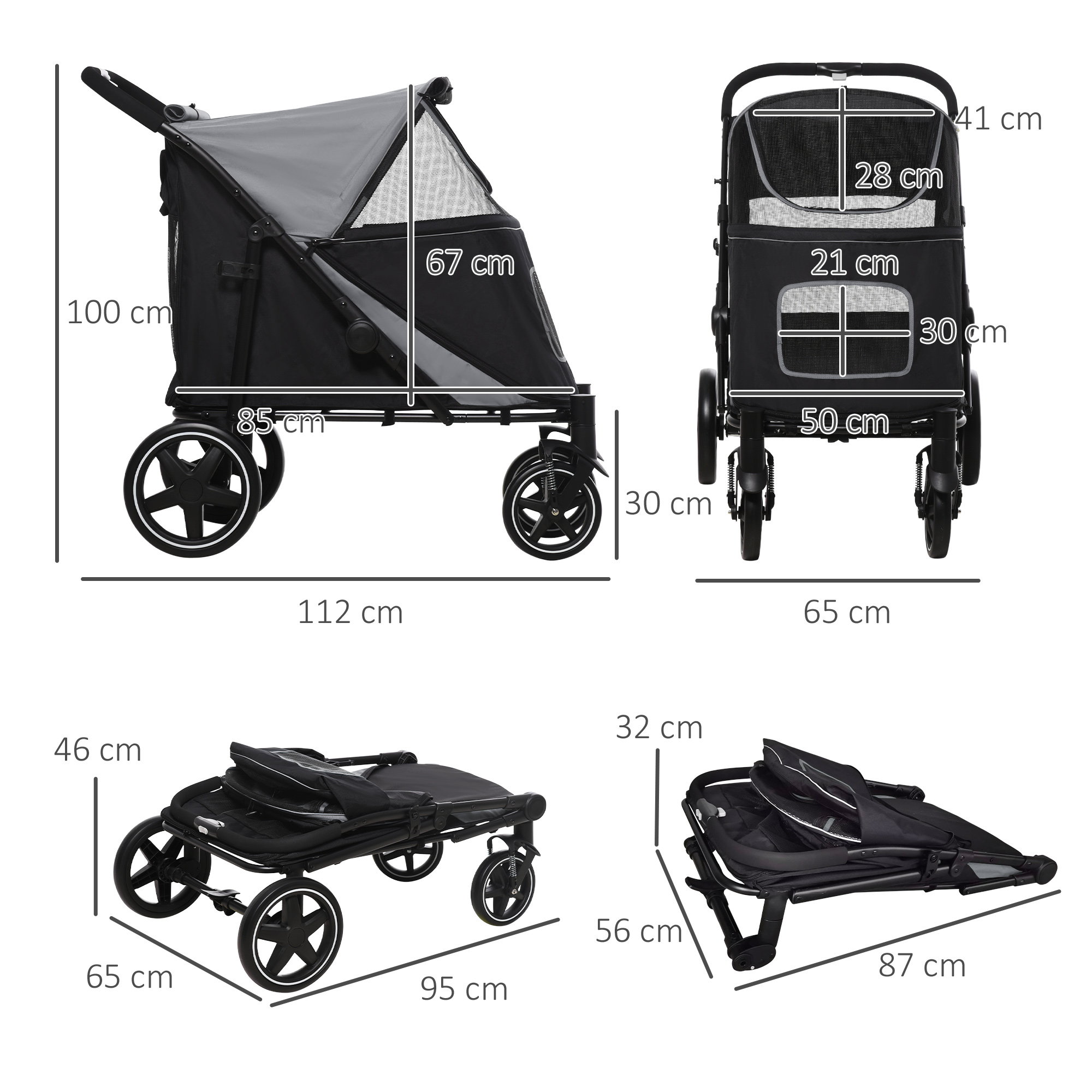 - Afmetingen opgevouwen: 87L x 56B x 32H cm