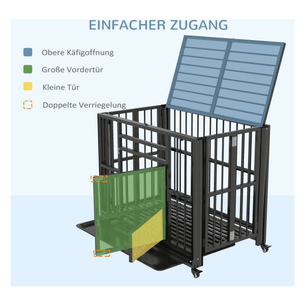 - Scharnierend dak: Het dak van de hondenkooi kan worden geopend, waardoor interactie met je huisdier gemakkelijker wordt.