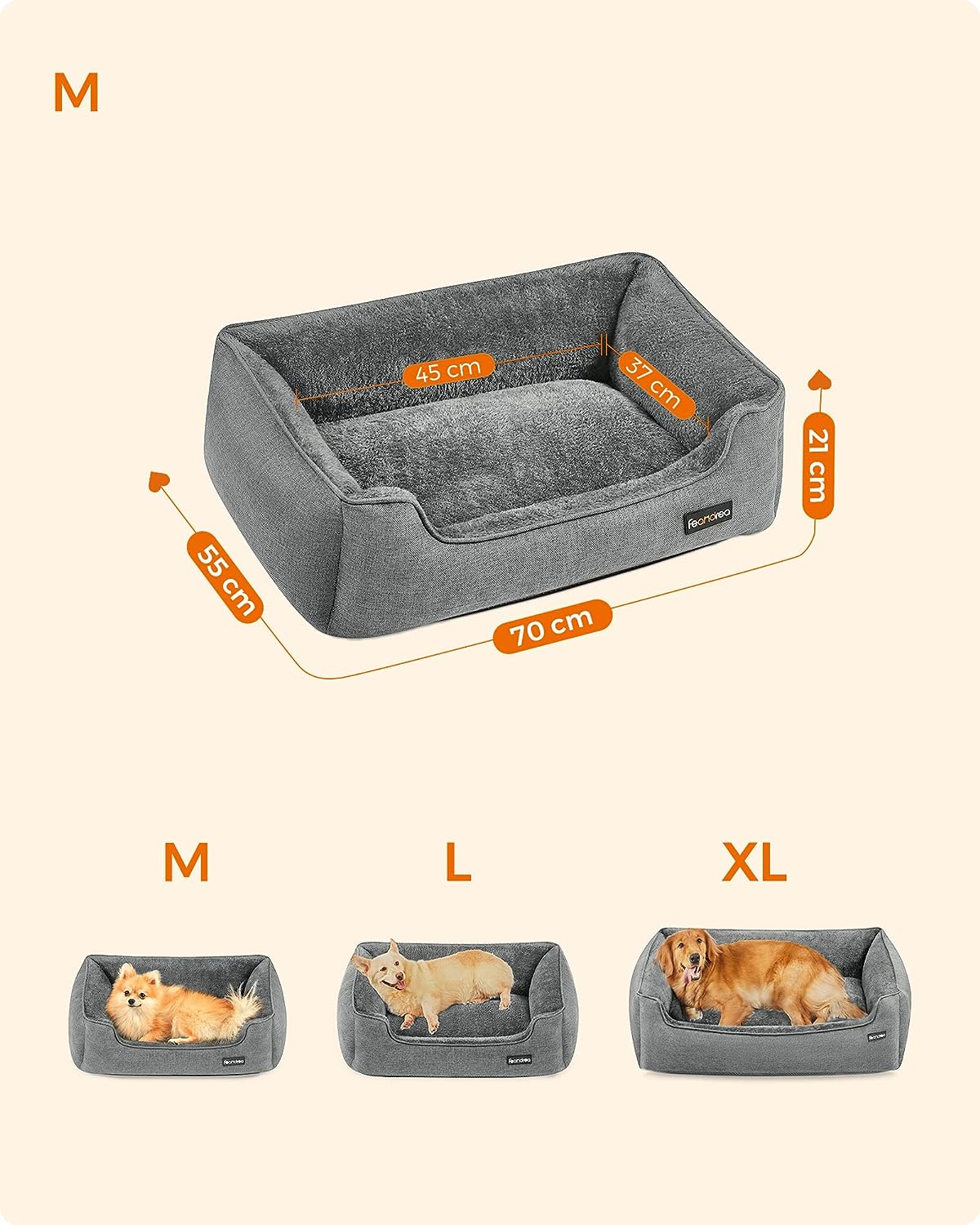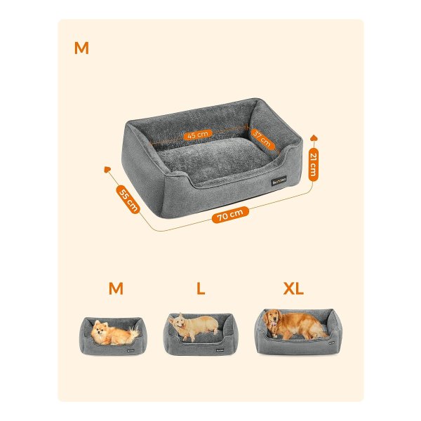 Hondenbed, grote hondenbank, overtrek afneembaar en wasbaar in de machine, grijs