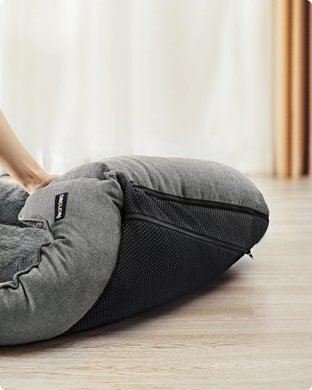 Bullet Point 3 | [Verwijderbare dekking, gemakkelijke reiniging] Open de twee ritsen in het onderste gebied, haal de vulling eruit, was de dekking en geur – minder werk voor u en meer hygiëne voor uw huisdier |