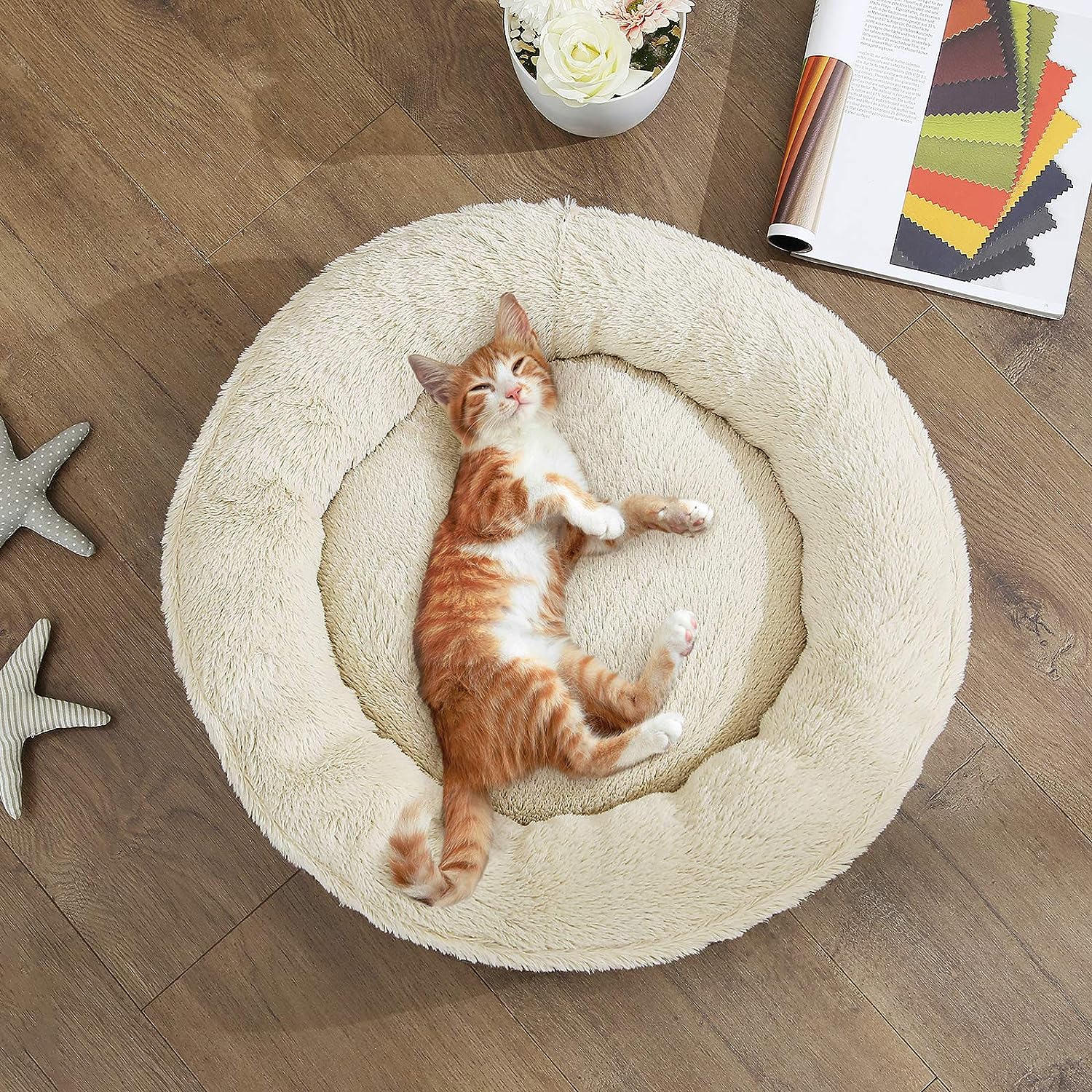 | Bullet Point 1 | een reusachtige donut: "Woof! Dit hondenbed ziet er goed genoeg uit om te eten." Het Ø 65 cm grote, donutvormige ligvlak van dit comfortabele hondenbed biedt veel ruimte voor kleine bontballetjes en doet het hart van honden en katten sneller kloppen |