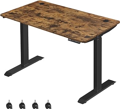 In hoogte verstelbaar bureau elektrisch, 70 x 140 cm tafeloppervlak, dubbele motor, traploos verstelbaar, geheugenfunctie met 4 hoogtes, oprijbeveiliging, vintabruin-zwart
