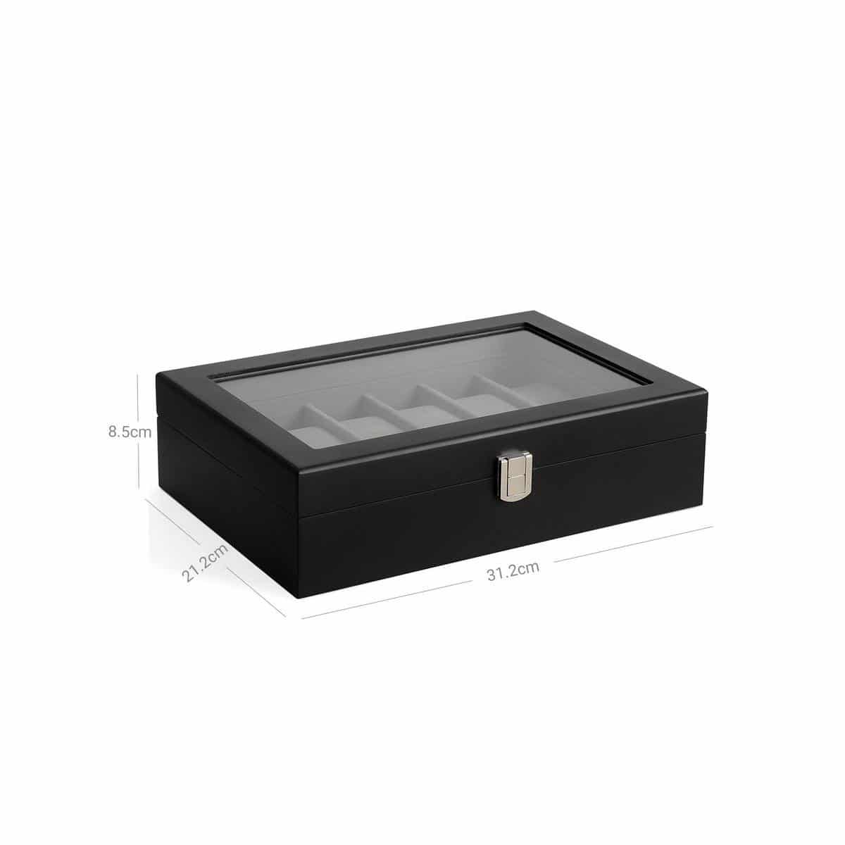Horlogedoos – LuxeWatch – Houten – Glazen Deksel – Zwart