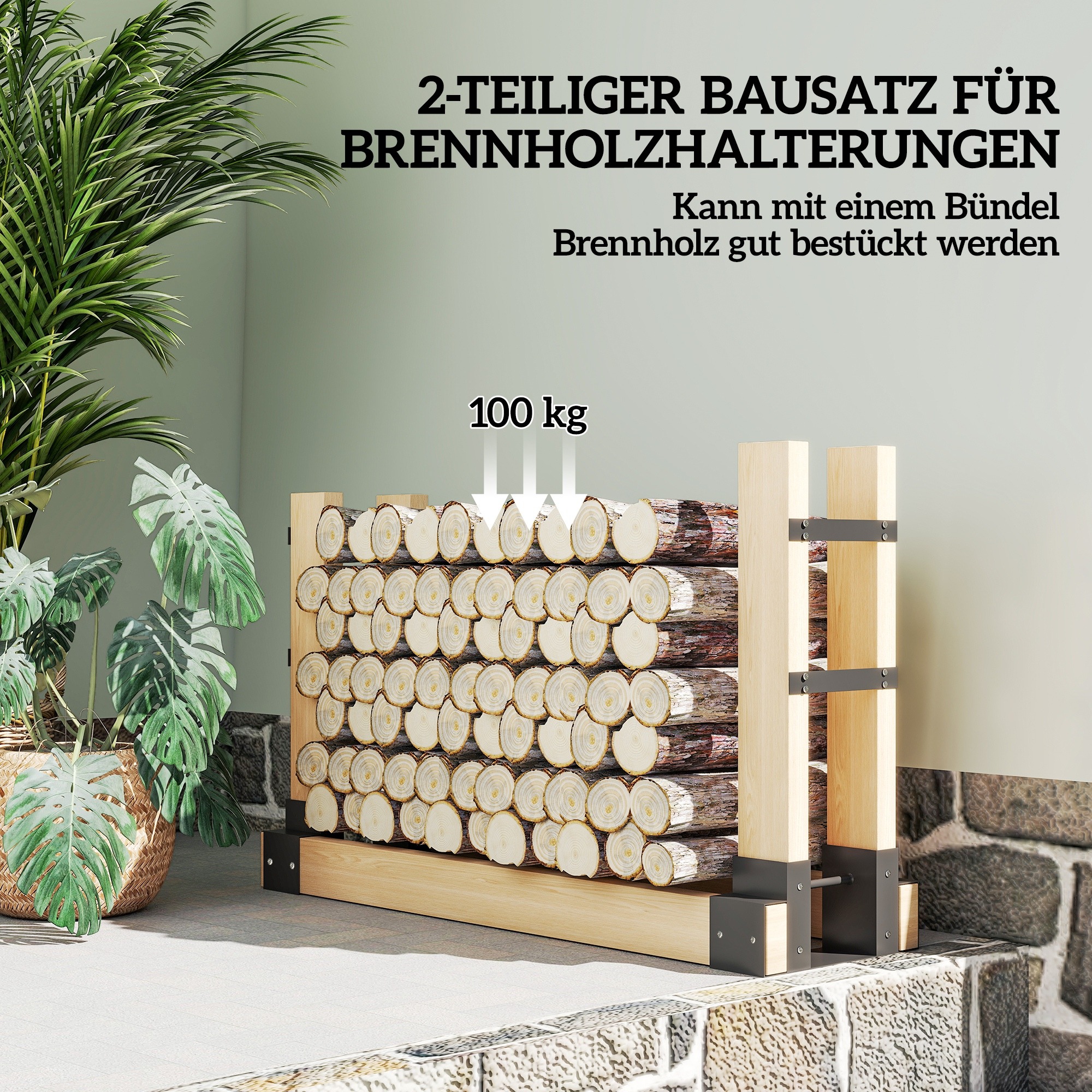 Bewaar haardhout met dit 2-delige houtopslagrek, houdt hout droog en van de grond met aanpasbare lengte en robuuste constructie. Eenvoudige montage en weerbestendig. Tot 100 kg draagvermogen.