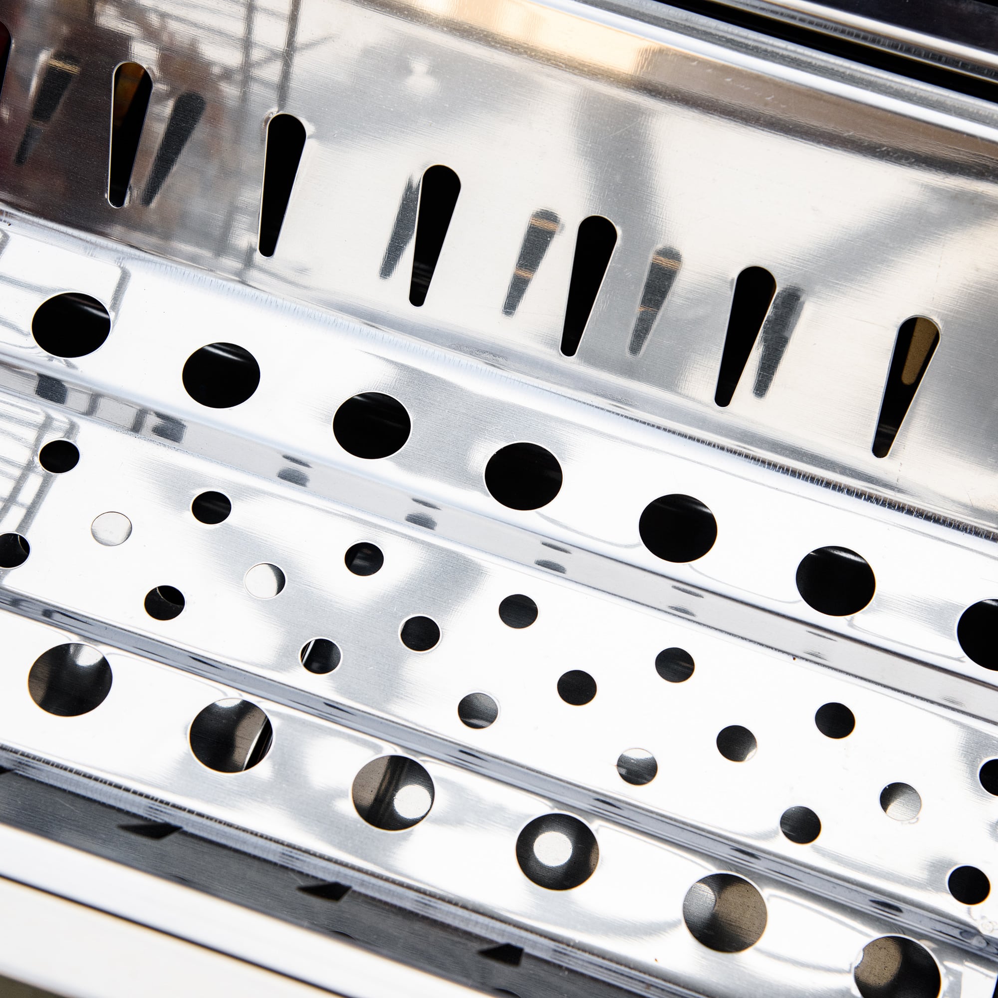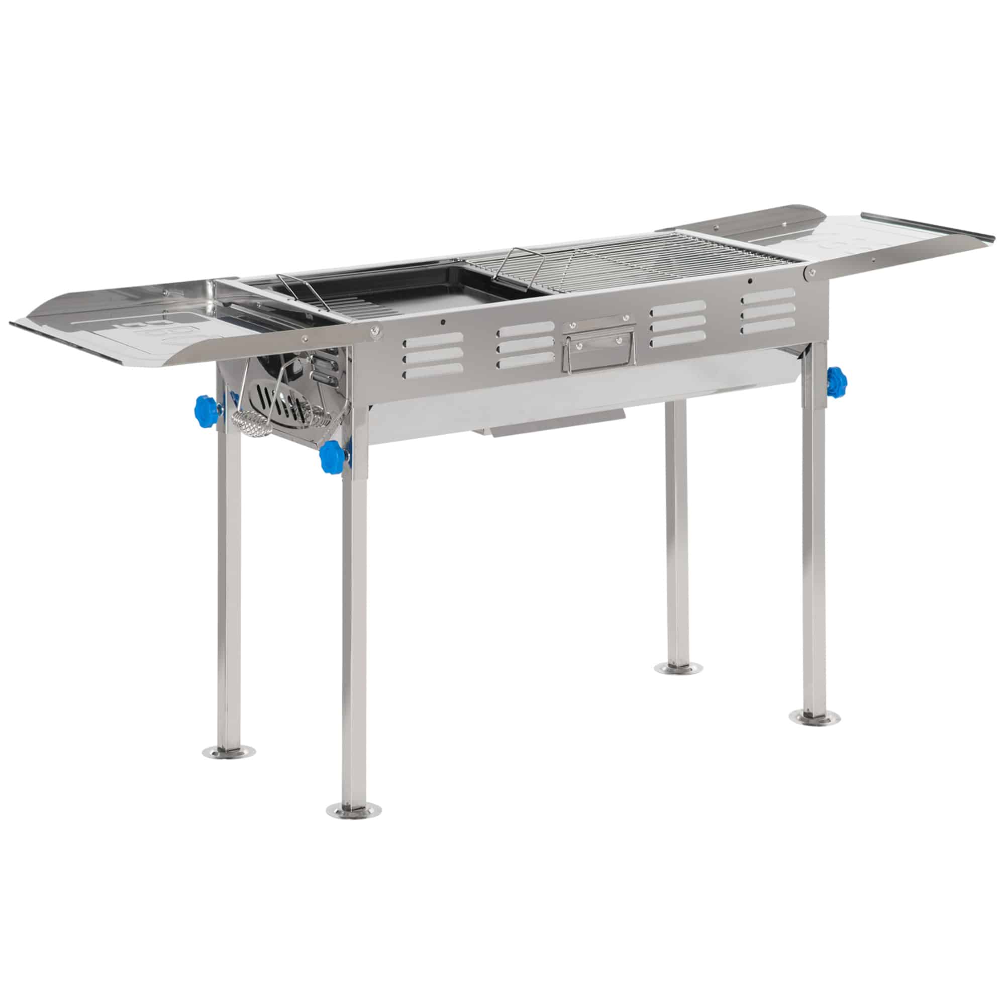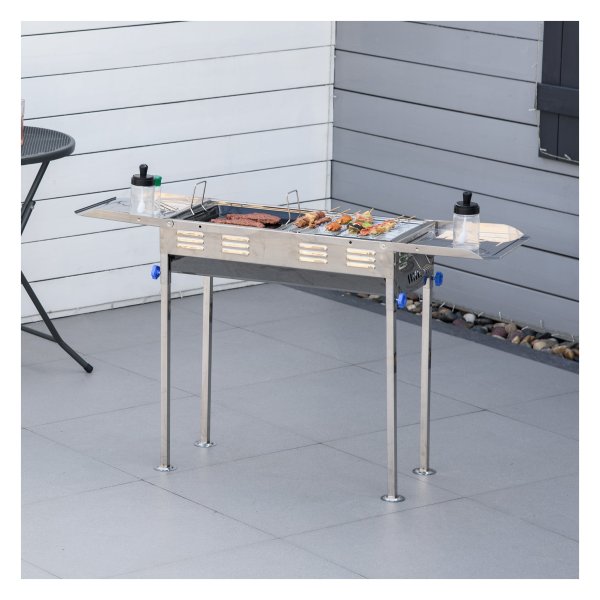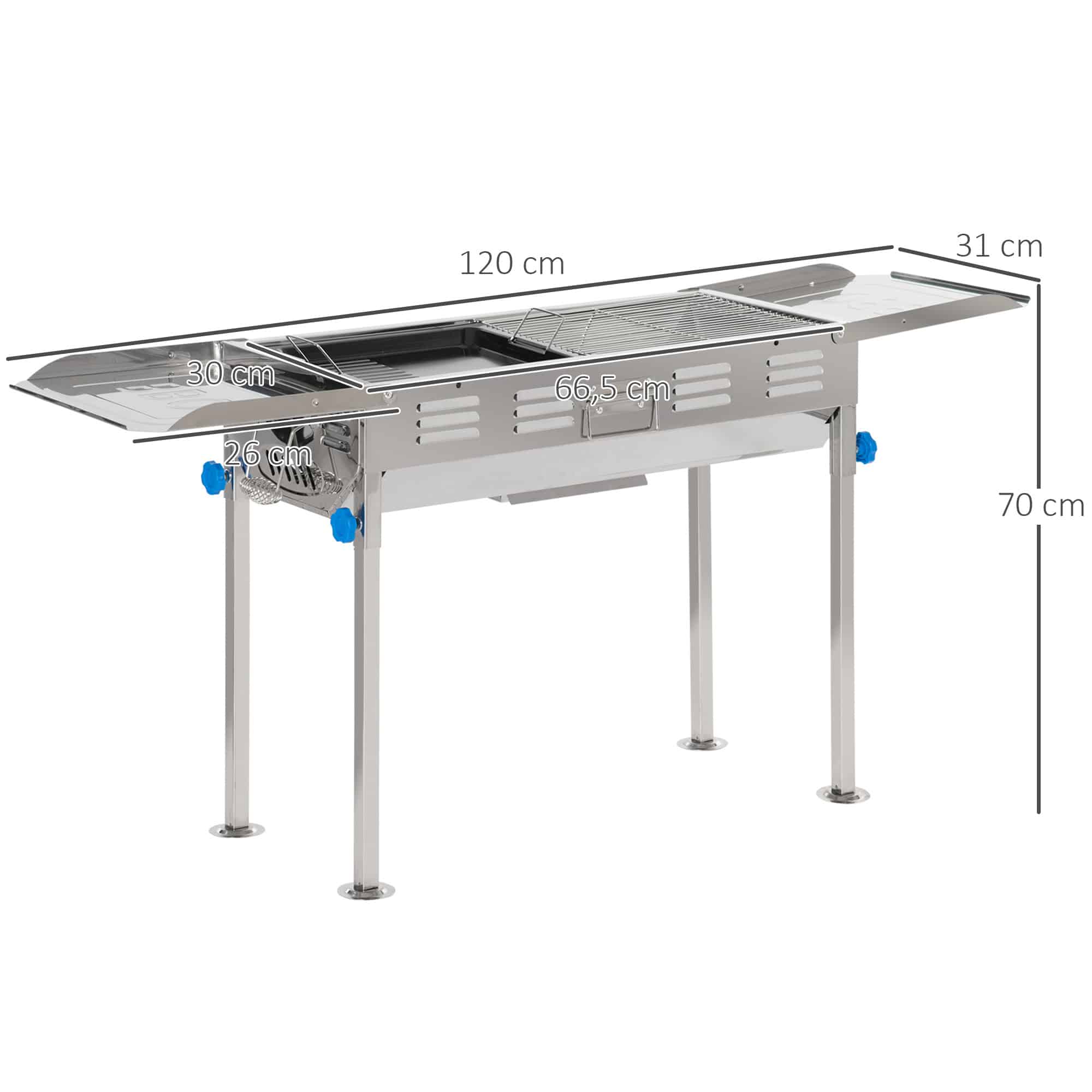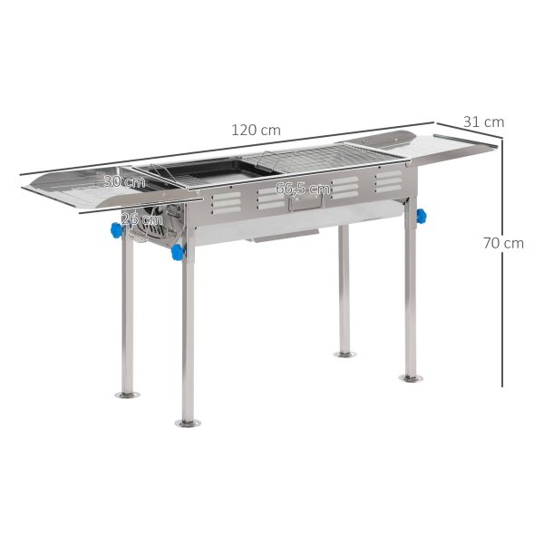 De Premium RVS Houtskoolbarbecue in Zilver biedt een complete barbecue-ervaring die je niet wilt missen. Met zijn ingebouwde aslade kun je na het grillen eenvoudig de as verwijderen, waardoor schoonmaken een fluitje van een cent is. Ook het warmhoudrek van de barbecue zorgt ervoor dat gerechten op temperatuur blijven terwijl je nog aan het grillen bent. Het ingebouwde kruidenrek zorgt ervoor dat je gerechten altijd perfect op smaak zijn.