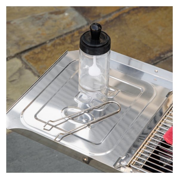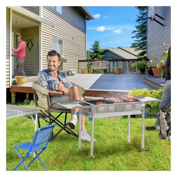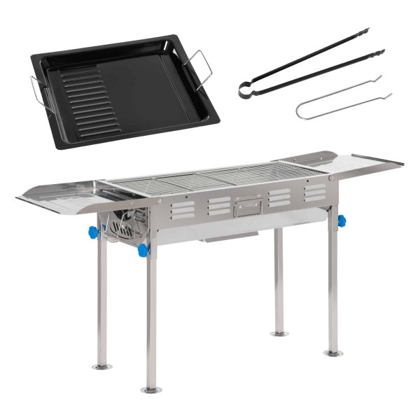 Deze barbecue is gemaakt van hoogwaardig roestvrij staal, waardoor hij lang meegaat en stevig is. De zilveren afwerking geeft de barbecue een moderne uitstraling die perfect past in elke tuin of op elk terras. Met een ruim kookoppervlak van 60 cm heb je genoeg ruimte om te koken voor grote groepen.