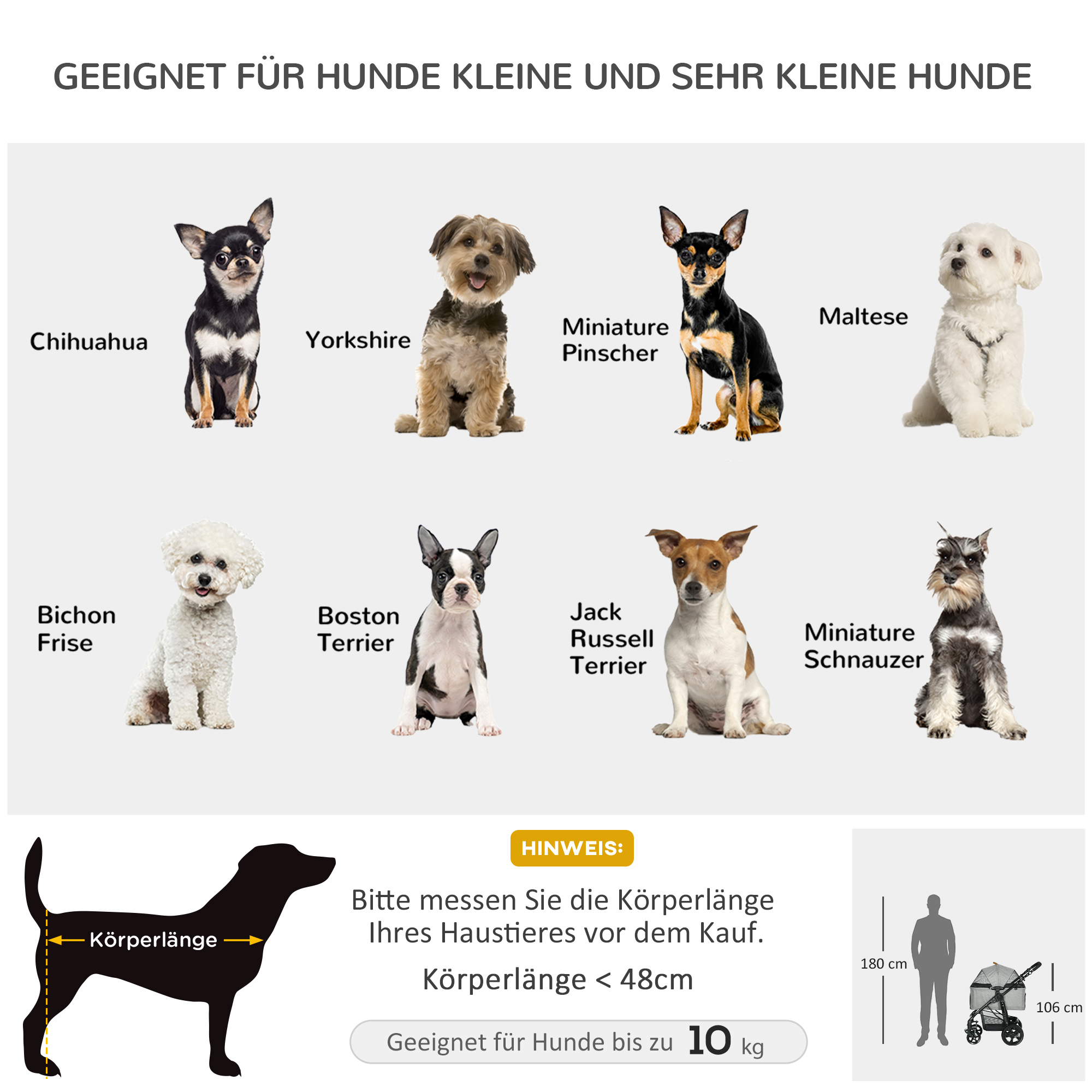 | Bullet Point 5 | Met deze praktische hondentrolley kunt u uw hond gemakkelijk meenemen. Stabiele constructie: Deze hondenbuggy voor kleine honden is stabiel en geschikt voor dagelijks gebruik! De buggy is gemaakt van een stalen frame en 600D Oxford-stof voor een stevige structuur. De luifel beschermt uw huisdier tegen zon en regen.Informatie over de kinderwagen: Totale afmetingen: 99L x 62B x 106H cm; Interne afmetingen: 73L x 40B x 59/33H cm (luifel inbegrepen/niet inbegrepen); Geschikt voor kleine en miniatuurhonden die minder dan 48 cm lang zijn en minder dan 10 kg wegen. Opmerking: meet vóór aankoop de lichaamslengte van uw hond |