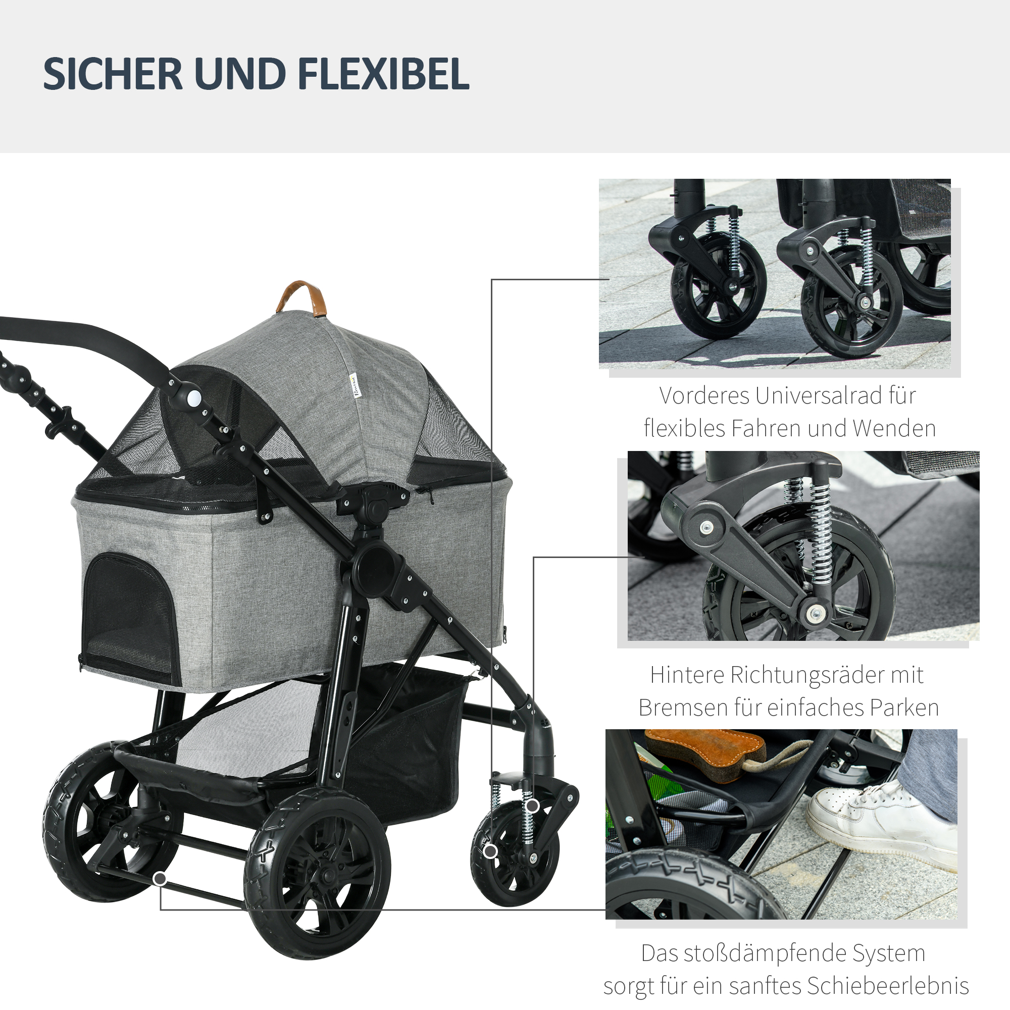 | Bullet Point 1 | Innovatief ontwerp: Rijd met je trouwe viervoeter in deze hondenbuggy! Vouw hem eenvoudig op en gebruik hem als draagtas |