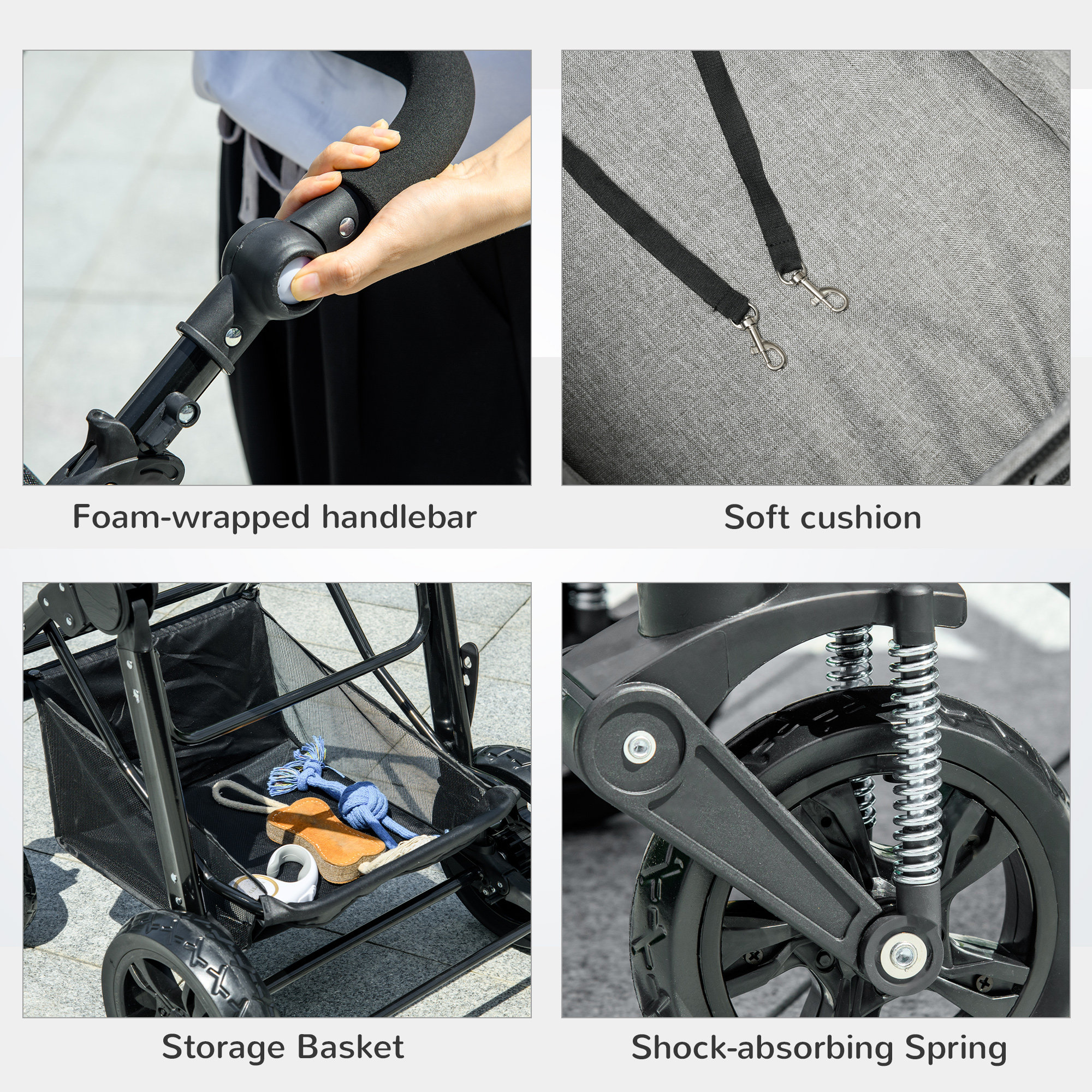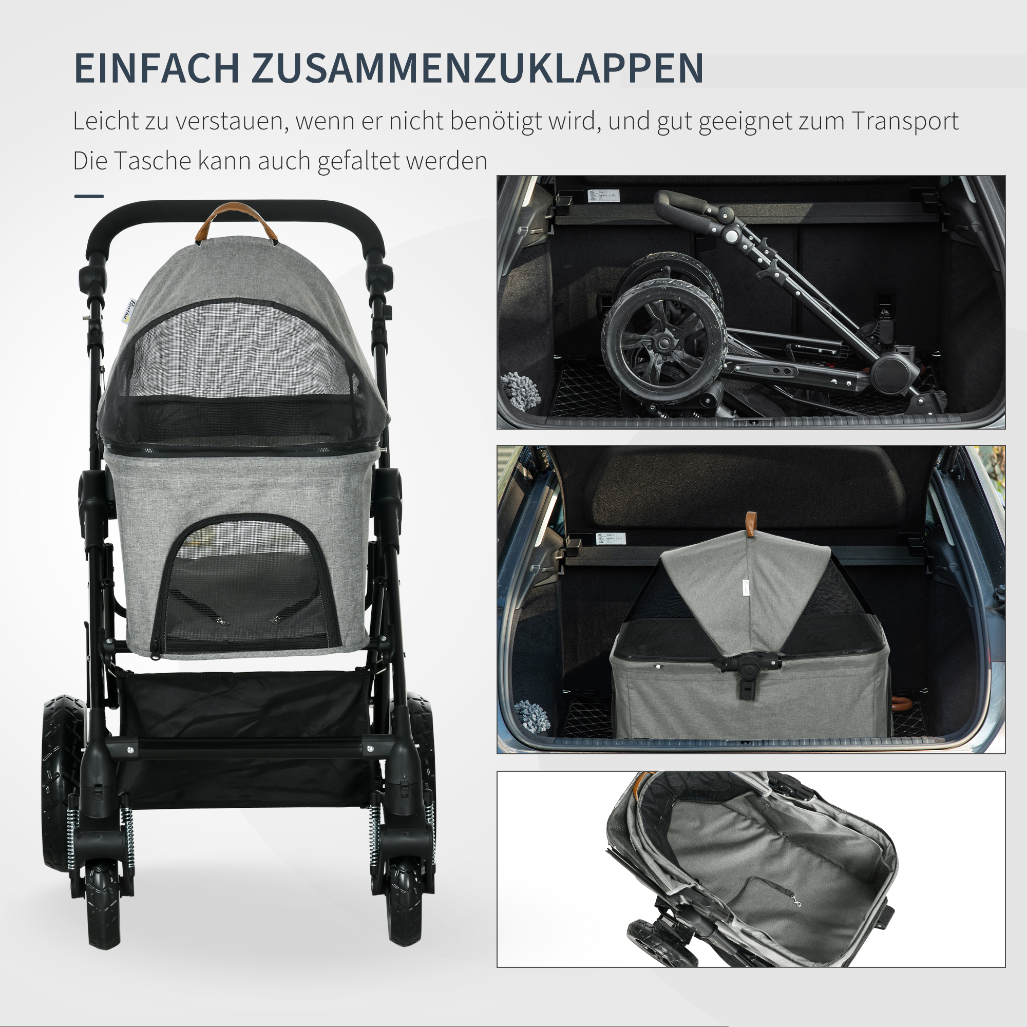 Hondenkar – HappyPets – Inklapbaar – Gaasraam – Grijs