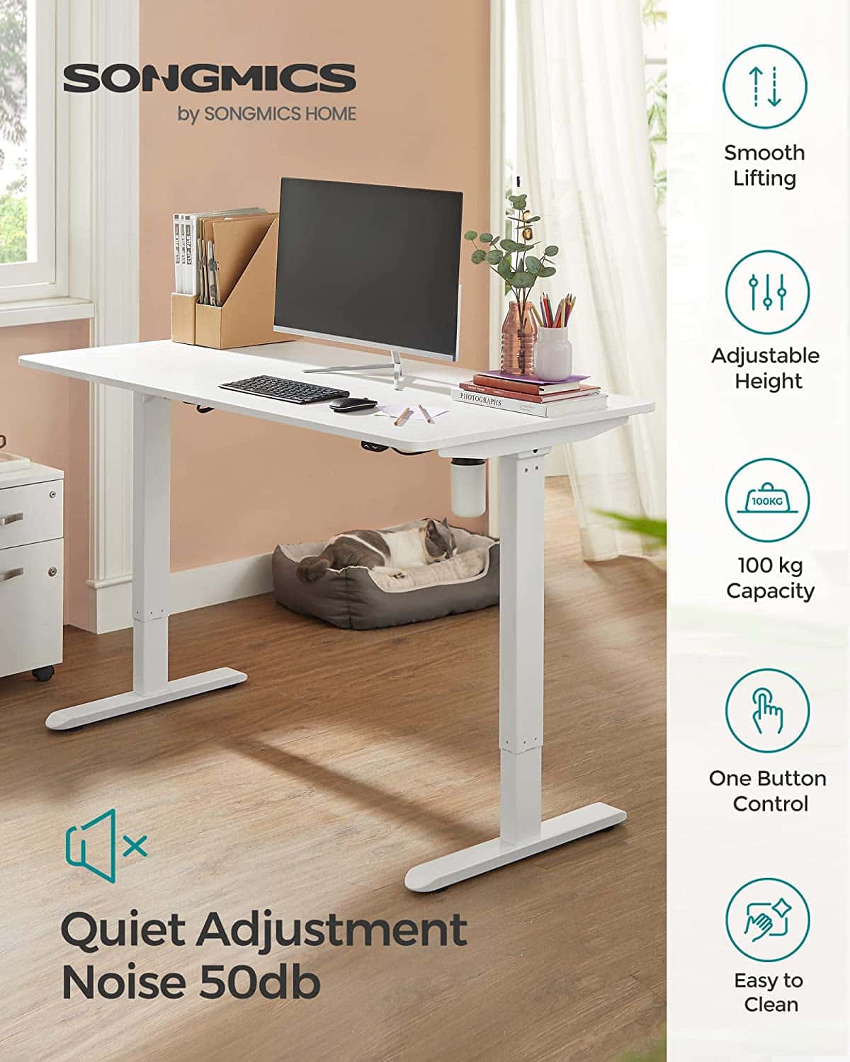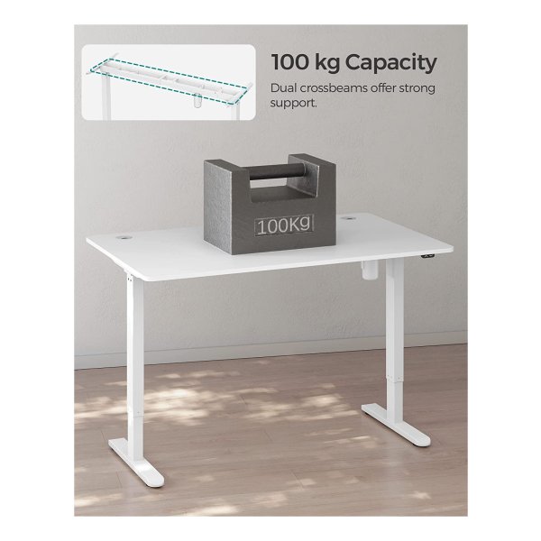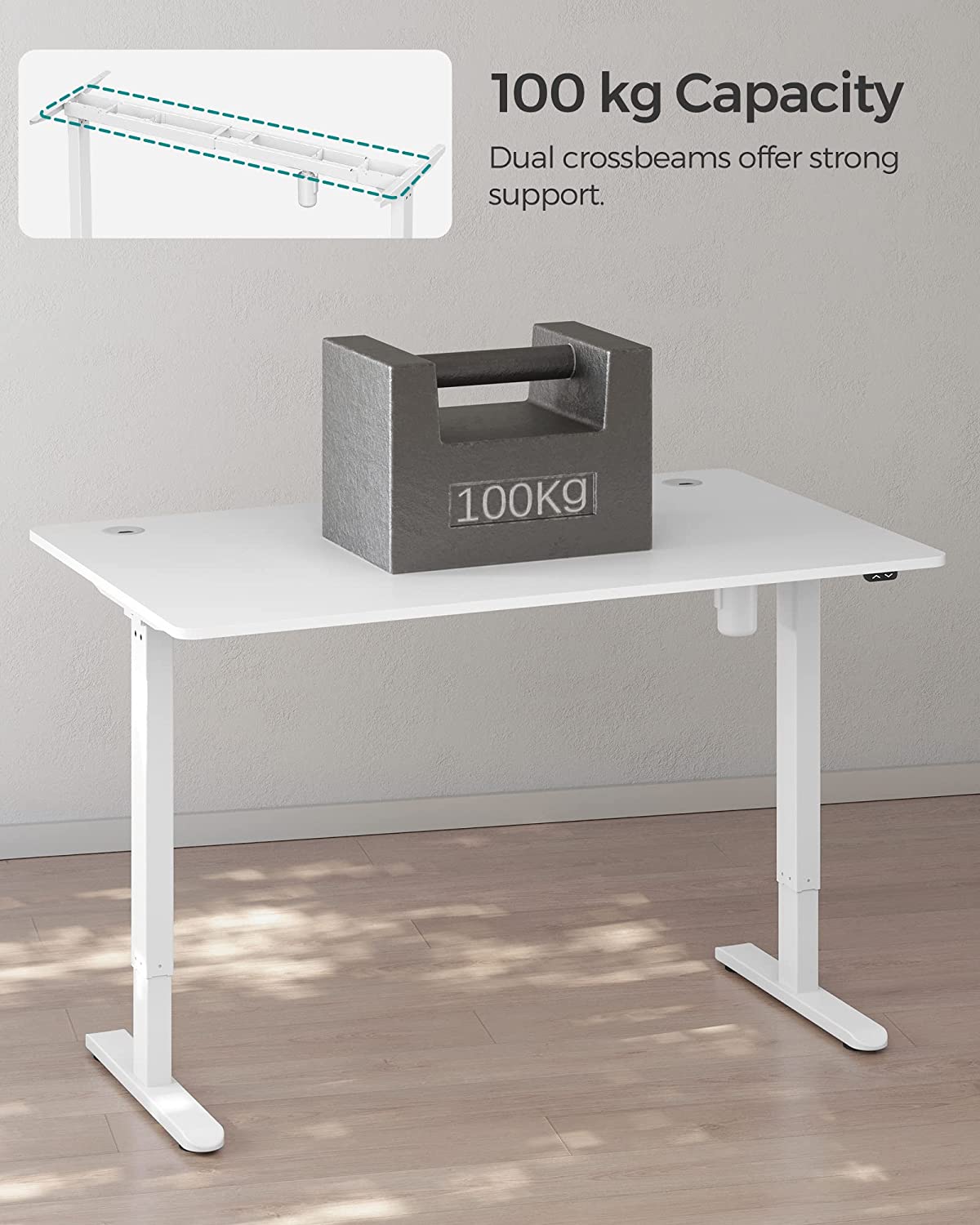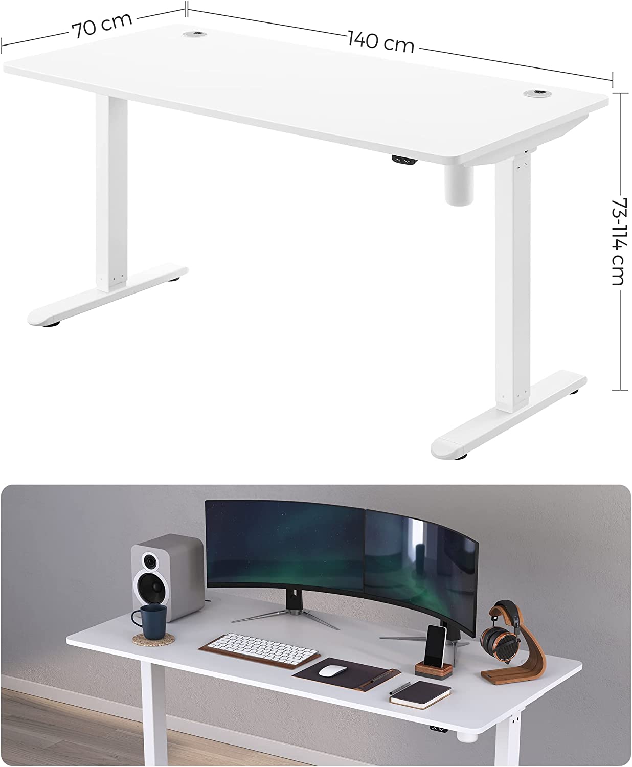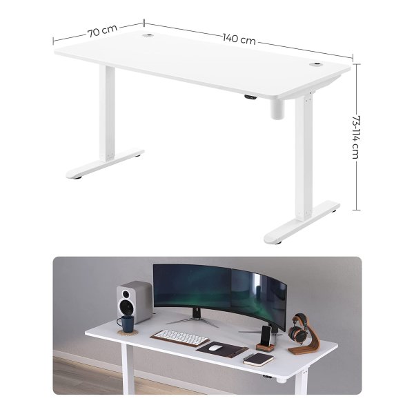 Elektrisch bureau, in hoogte verstelbaar, bureaustraam, bureaulijst met motor, 140 x 70 x (73-114) cm, staal, witte LSD012W01