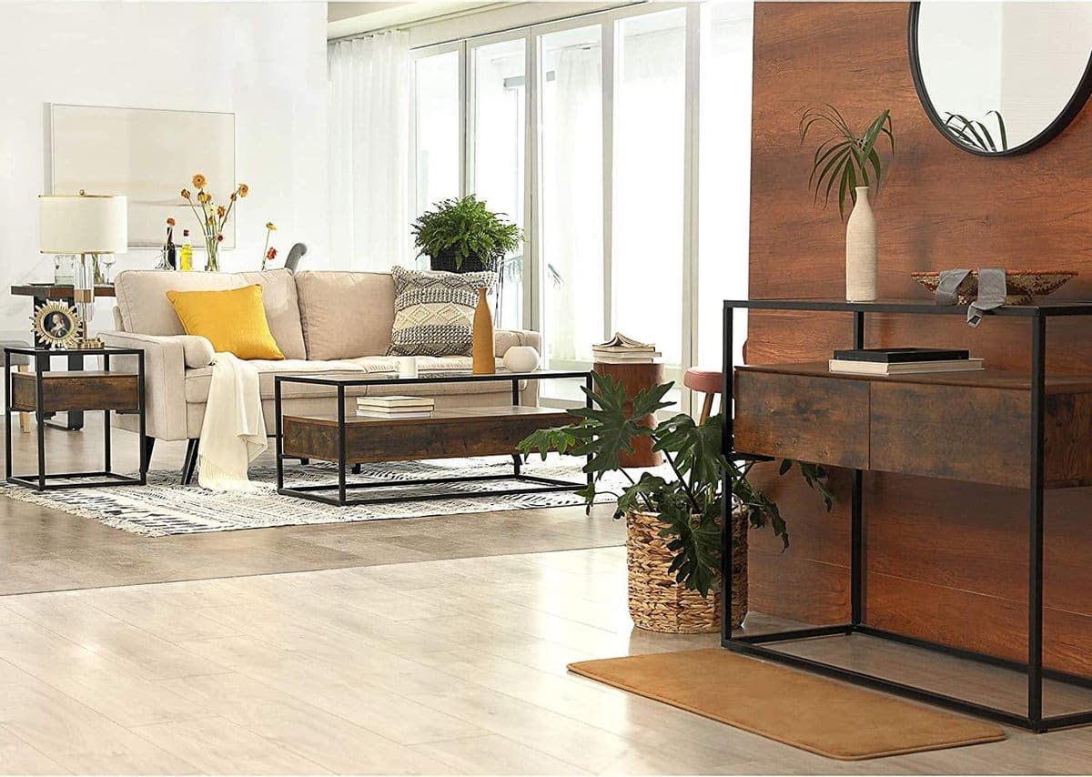 | Bullet Point 2 | – – Industrieel design met zwart ijzeren frame, glazen blad en vintage plank past in kleine en grote ruimtes. |