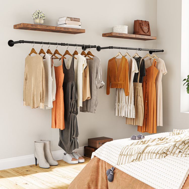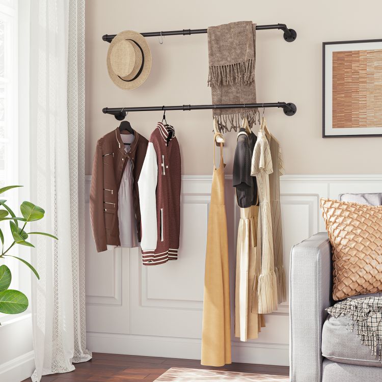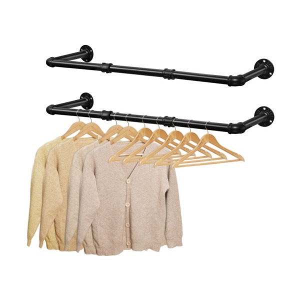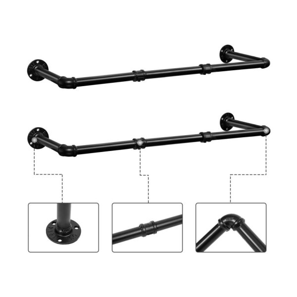 Industriële pijp kledingrails set van 2 100 cm wand gemonteerd afneembare kledingrek maximale belasting
