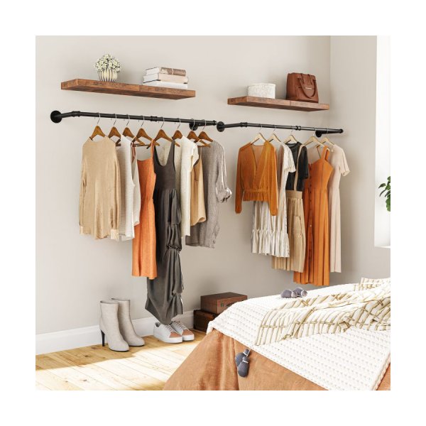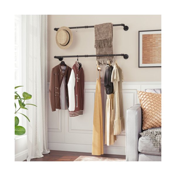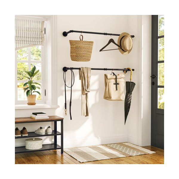 Perfecte maat: deze kledingrail is 64 cm lang, de afstand tussen muur- en kledingrail is 25 cm, biedt voldoende ruimte om uw rommel netjes en netjes op te hangen en heeft een laadcapaciteit van 30 kg per kledingrek