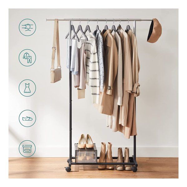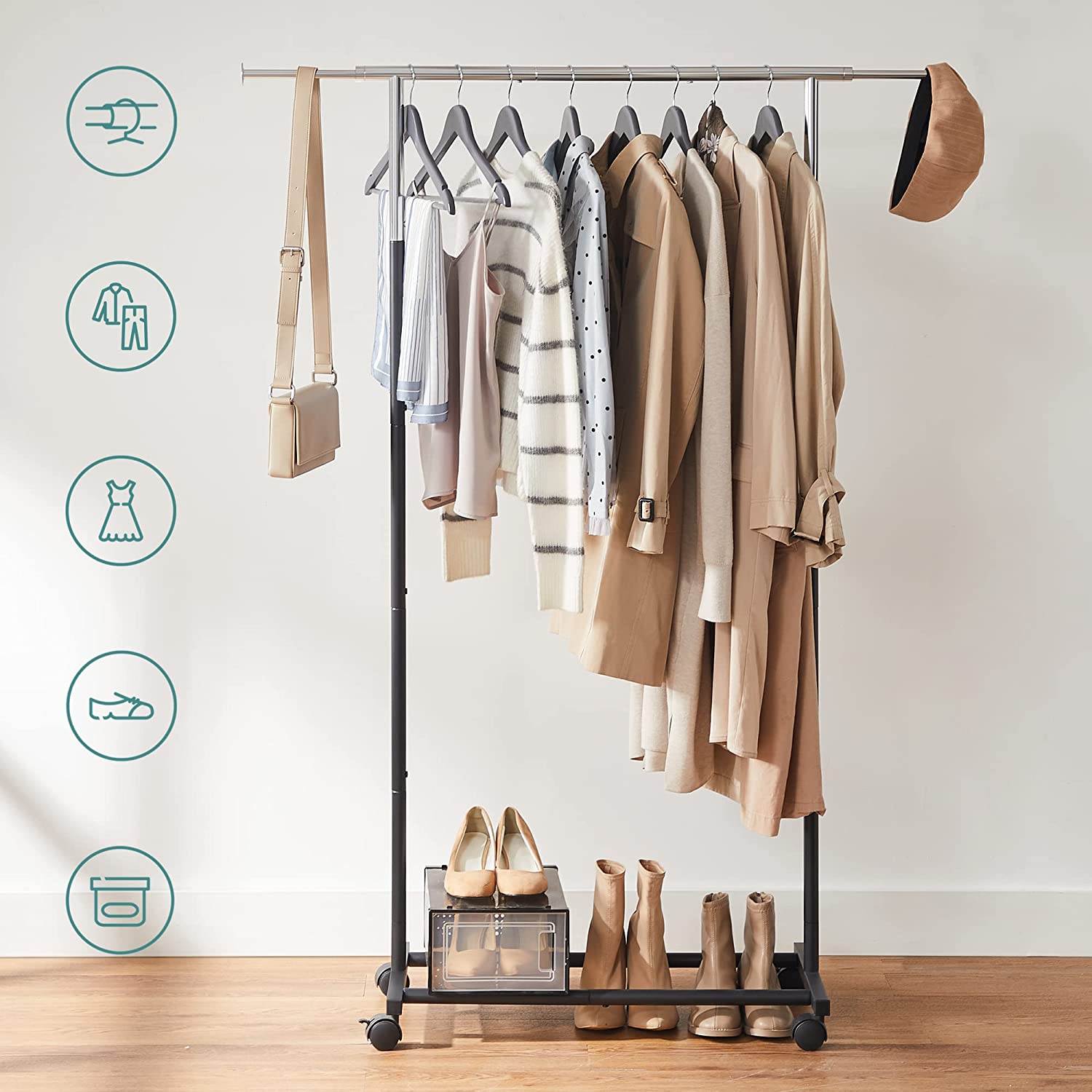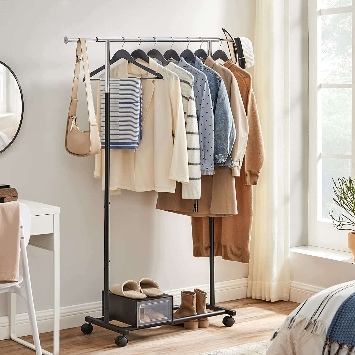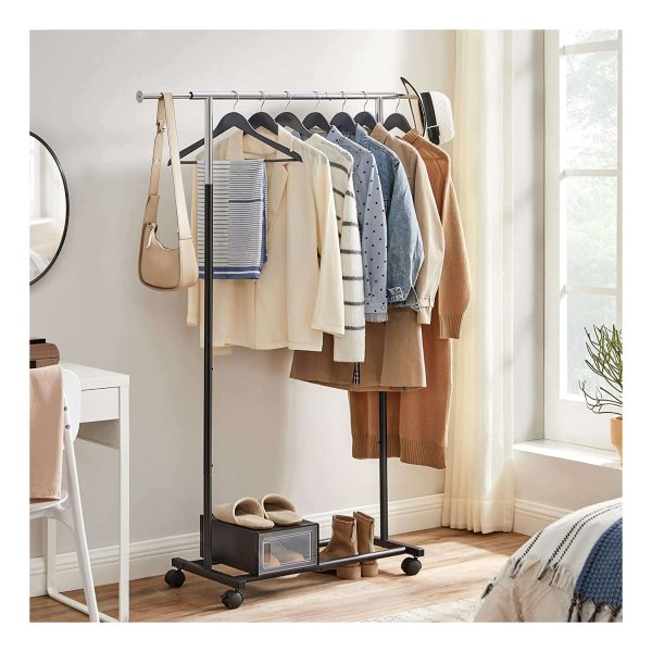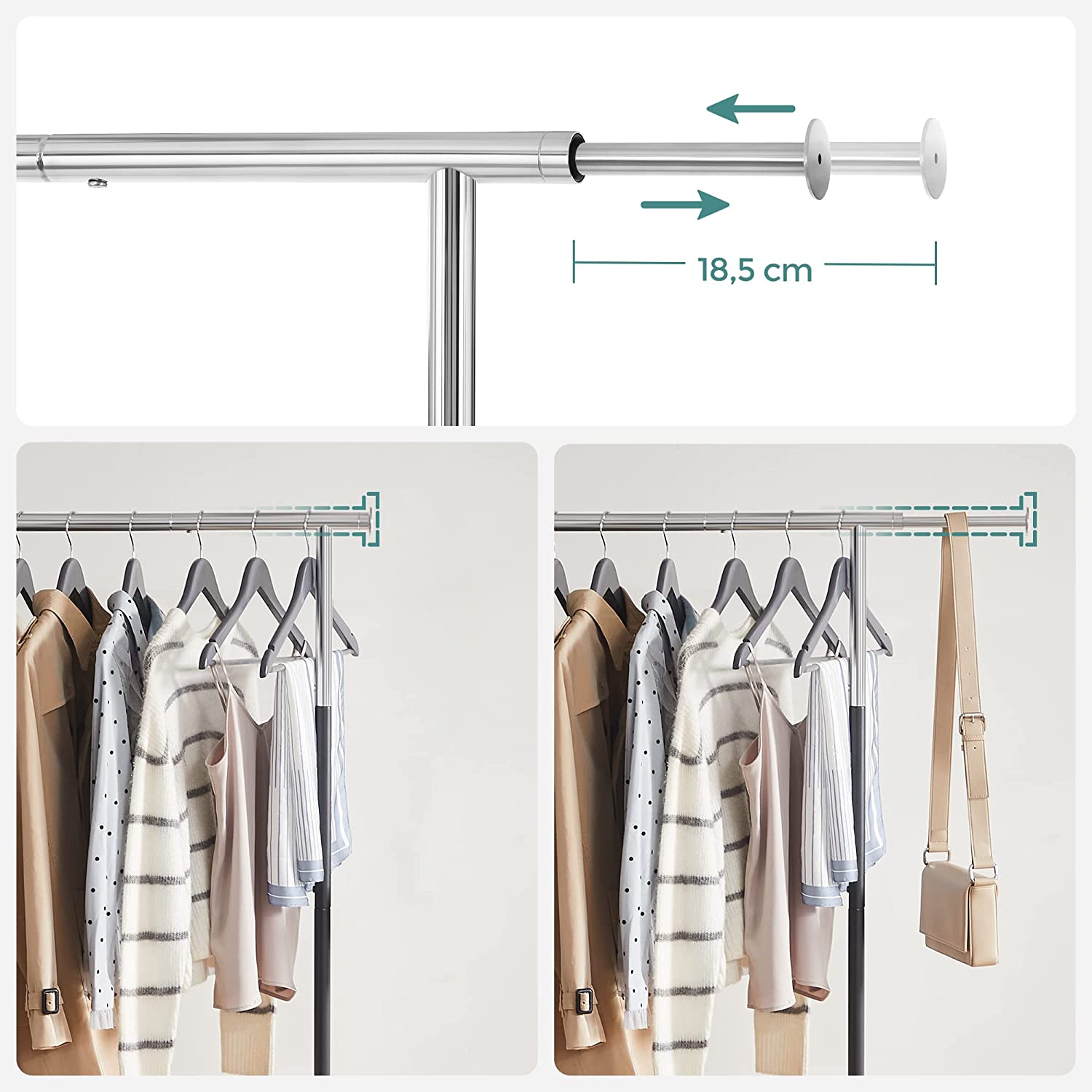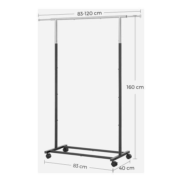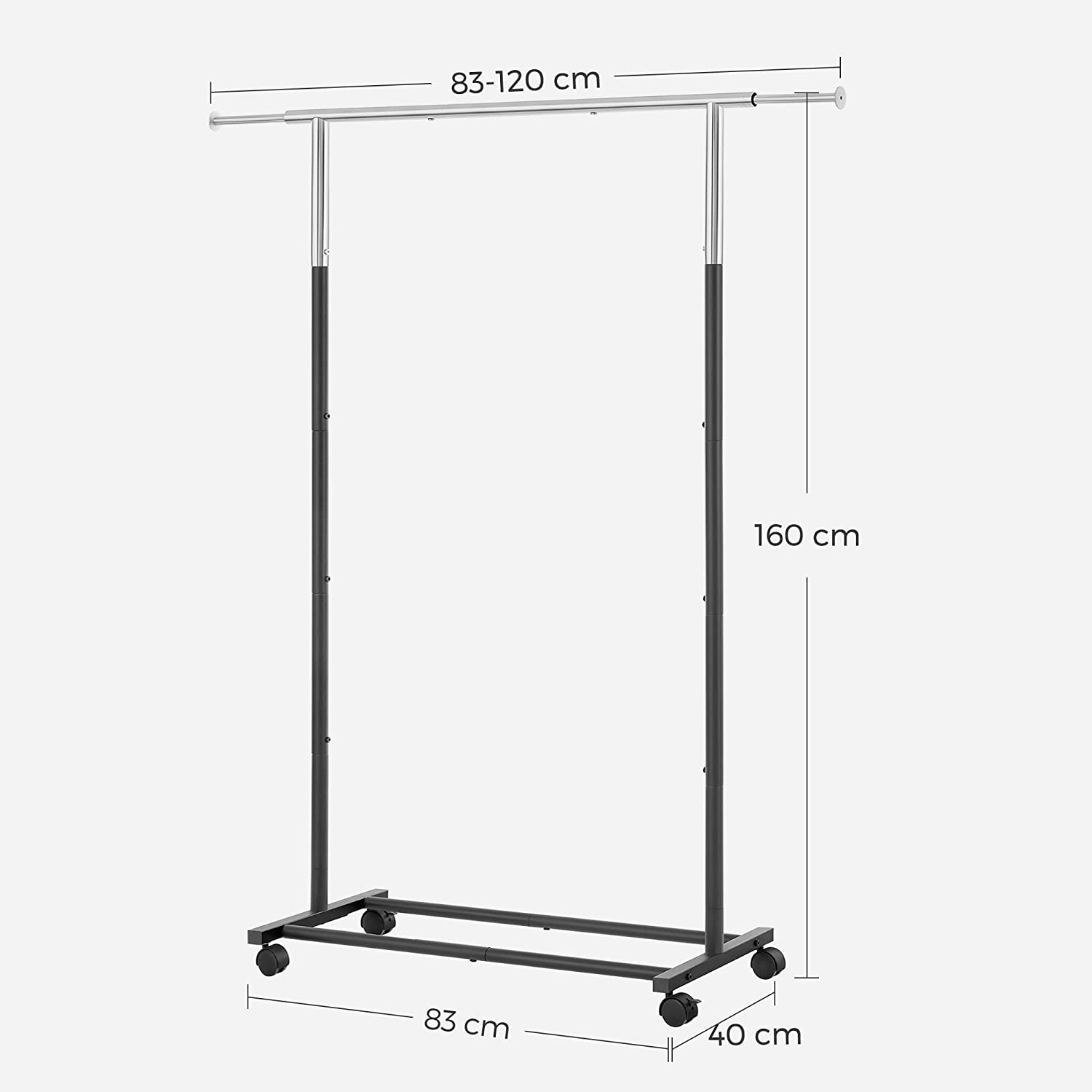 Kapstok Met Wielen – Belastbaar Tot 25 Kg – Verstelbaar – Zilver-Zwart