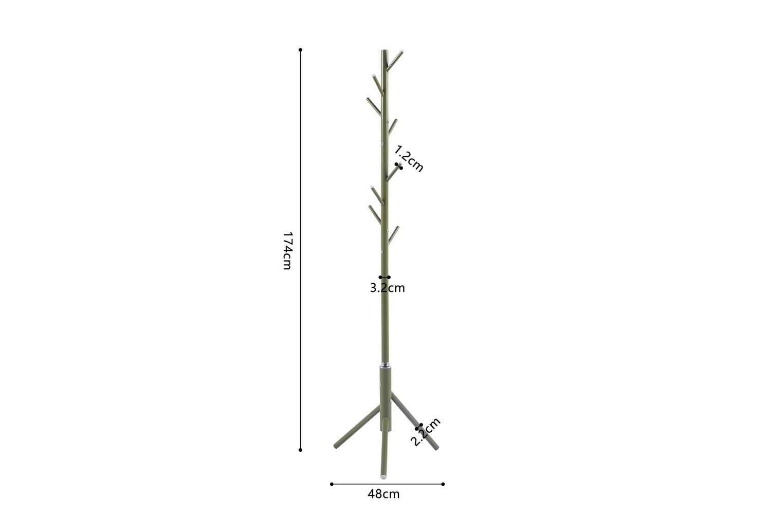 Kapstok ‘Kassie’ in groen, afmetingen 174 x 48 x 48 cm. Geschikt voor het ophangen van jassen en accessoires. Stevig en praktisch.