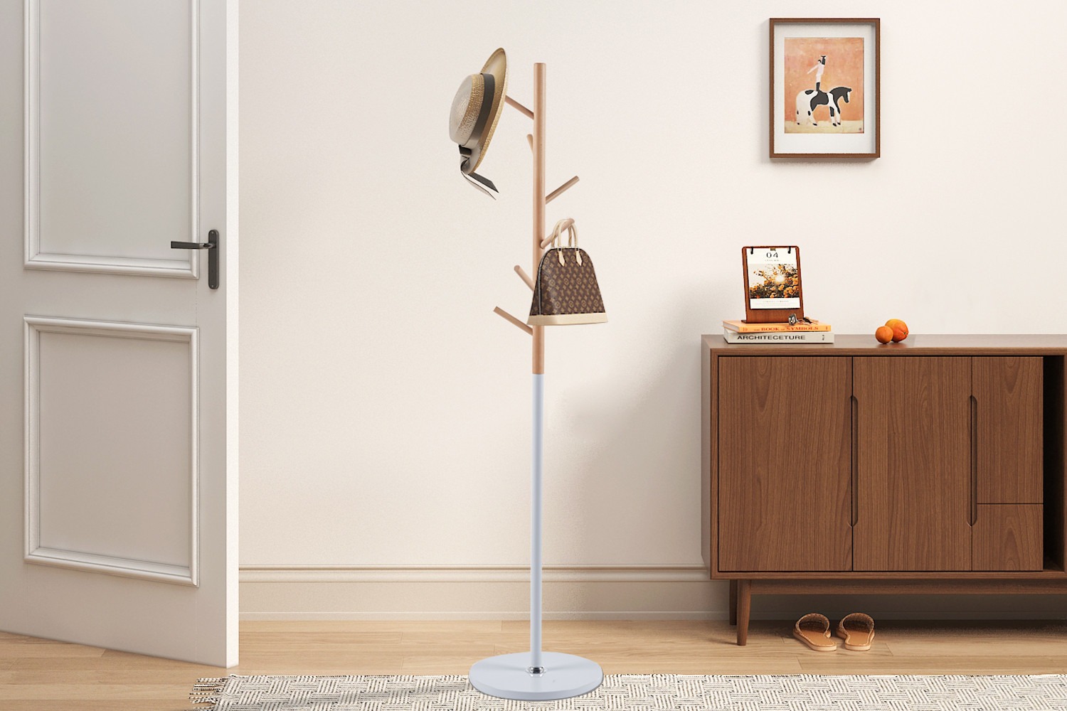 De kapstok is voorzien van meerdere ophanghaken waar je diverse kledingstukken aan kunt hangen. Bovendien is er een handige plank aanwezig waar je hoeden, sjaals of andere items op kunt plaatsen.