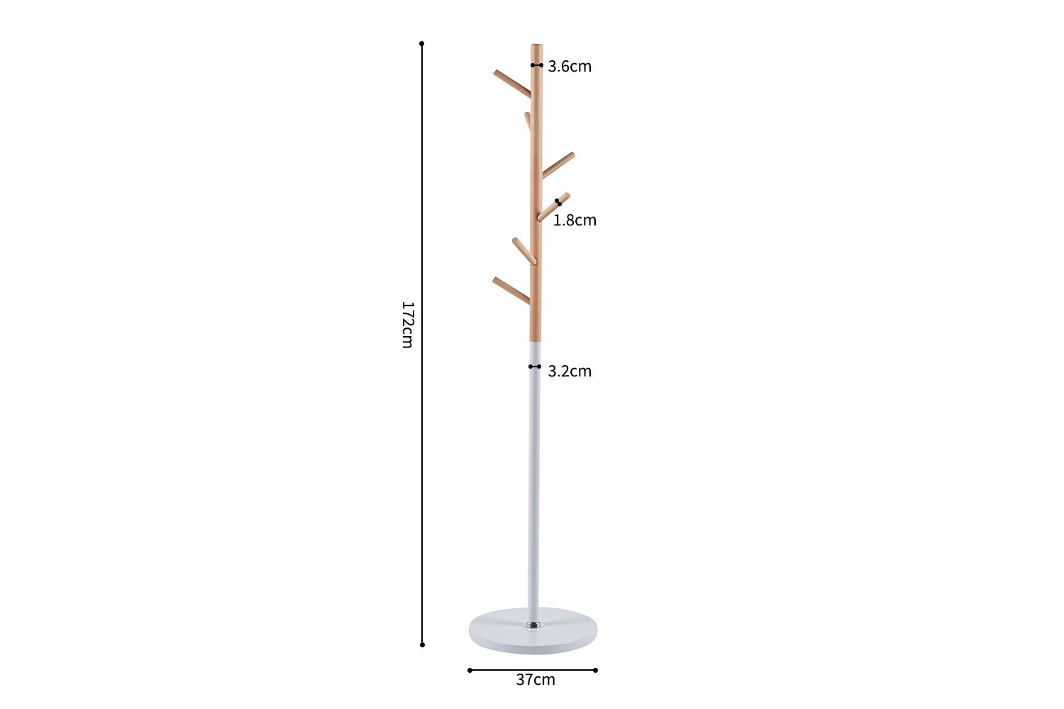 Met een hoogte van 172 cm en een breedte en diepte van 37 cm, biedt de kapstok voldoende ruimte om al je jassen, tassen en accessoires netjes op te bergen. Daarbij neemt hij dankzij zijn slanke ontwerp weinig ruimte in beslag, ideaal voor kleinere ruimtes.