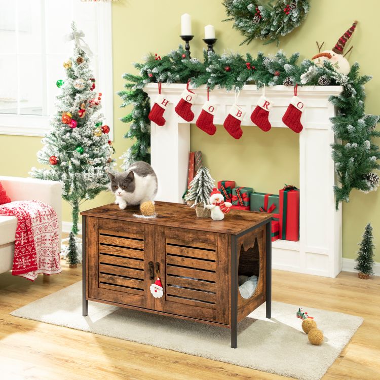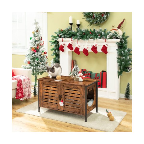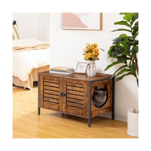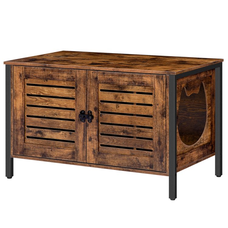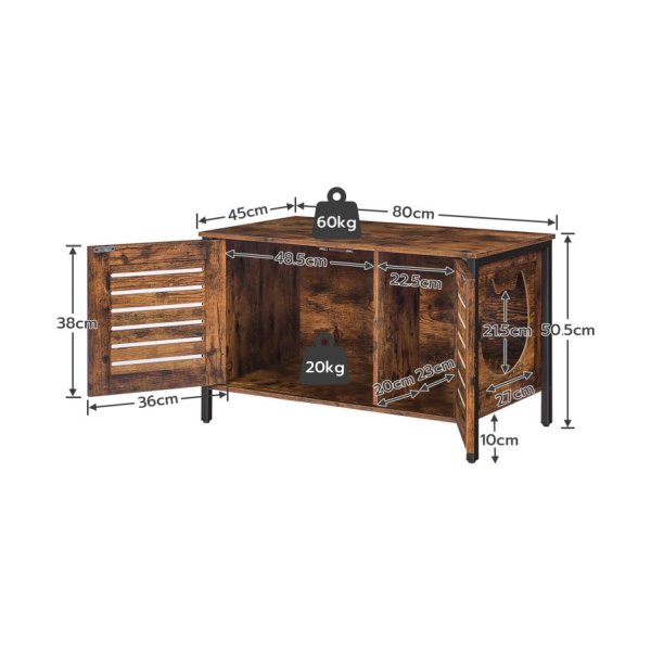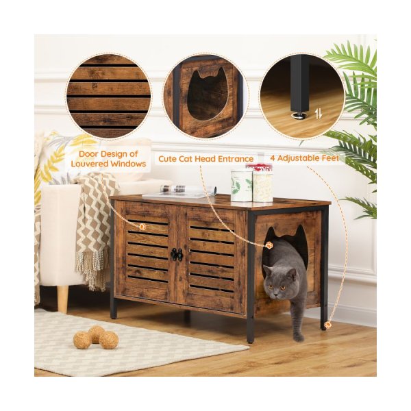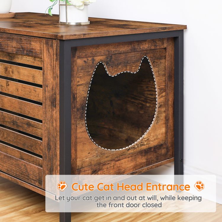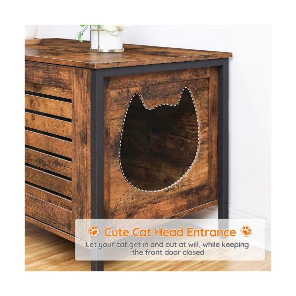 Kat kattenbak behuizing, verborgen meubels met sluitermaat en kattenkopmat, ingang kan links of rechts zijn, de waswaskamer van de kat, het grootste deel van de kattenbak, Rustic Brown