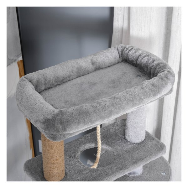 Houd je geliefde kat gelukkig en actief met deze luxe kattenpaal in lichtgrijs. Deze kattenboom is ontworpen met het welzijn van jouw kat in gedachten en biedt een scala aan functies om aan zijn behoeften te voldoen.