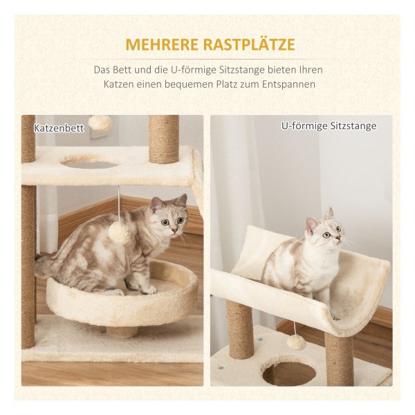 Bullet Point 1 | Het luxueuze en multifunctionele ontwerp van de PawHut-krabpaal, met krabpalen, zitplaatsen, krabmatten, een bed en hangende ballen, biedt uw kat een ideale plek om te spelen, ontspannen, klimmen en krabben, dankzij de stevige spaanplaten frame en bekleding van zacht en comfortabel pluche voor optimale comfort en ondersteuning. |