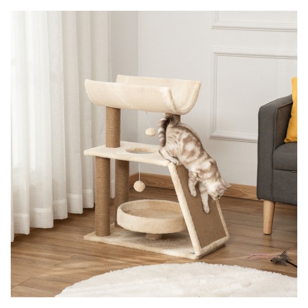Bullet Point 5 | De PawHut-krabpaal combineert ruimtebesparende voordelen met ergonomische kenmerken zodat uw kat kan spelen, ontspannen en krabben op n handige plek. |