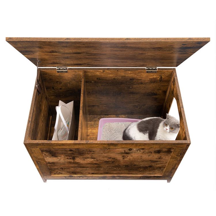 Kattenbak behuizing, kat kattenbakmeubilair verborgen, flip bovenste toiletruimte opbergbank, met divider vergrote huis nachtkastje voor dikke kat, rustiek bruin