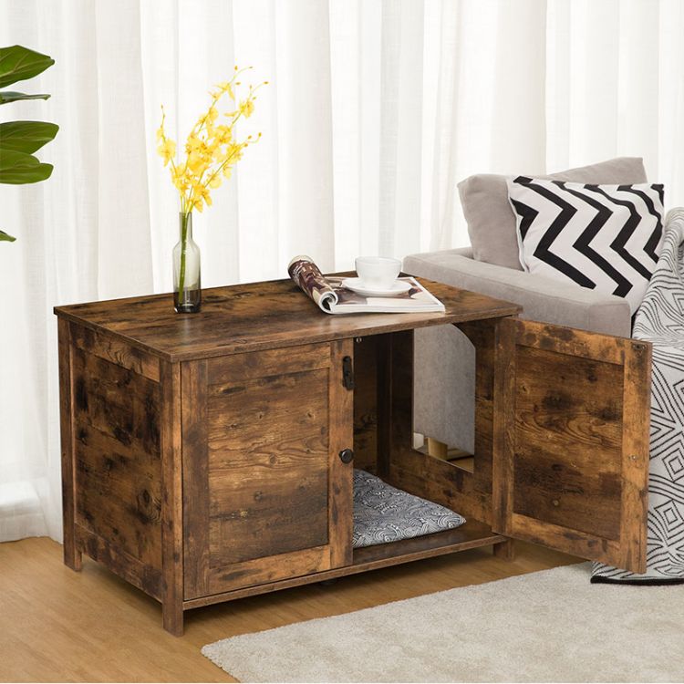 Kattenbak behuizing, kat kattenbakmeubilair verborgen met verdeler, verborgen kattenbak grote kattenbakmeubels, houten huisdierenhuis, eindzijdeltafel, woonkamer, slaapkamer, rustiek bruin